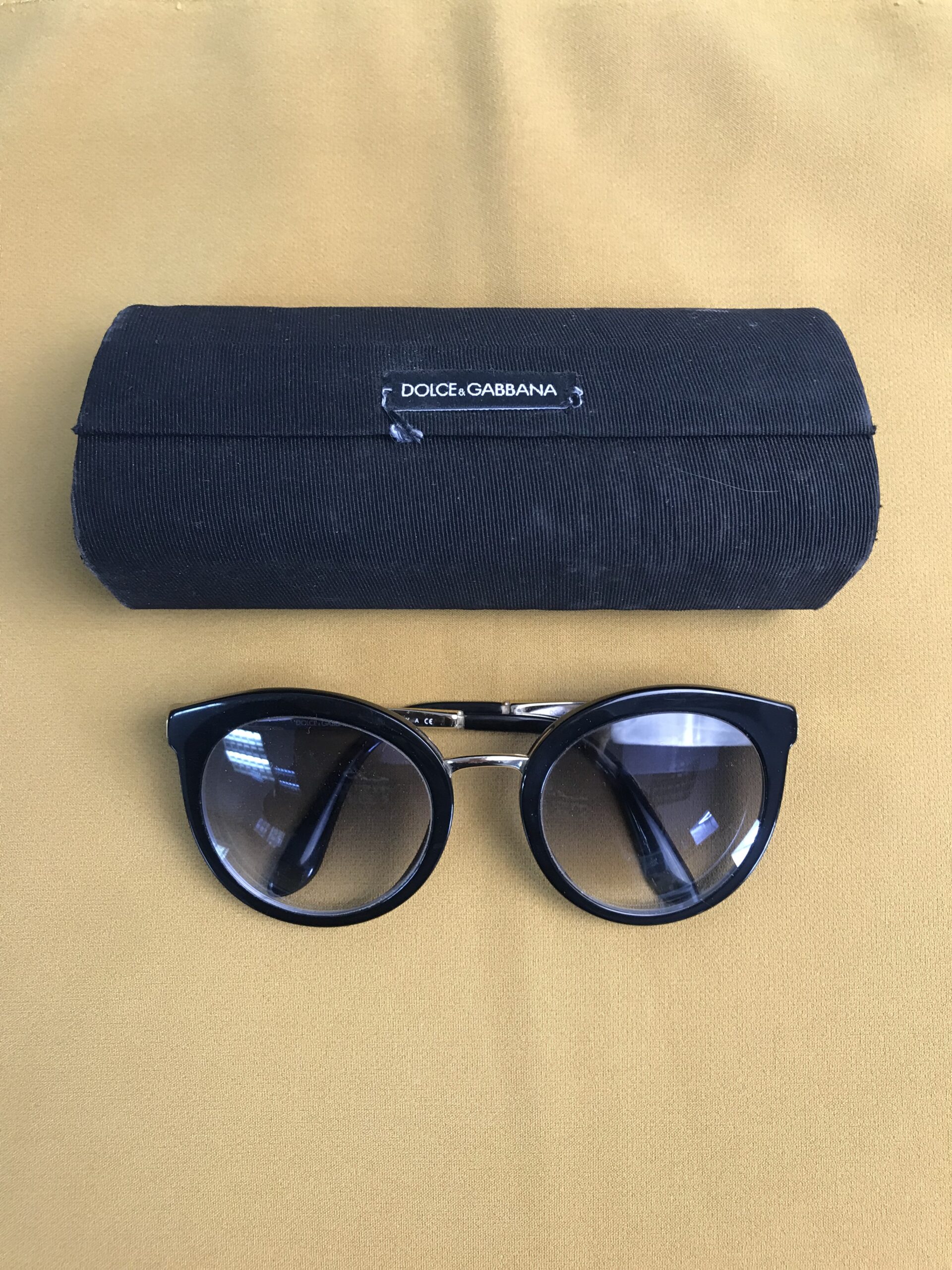 Monture de lunette Dolce & Gabbana. Superbe monture signée Dolce & Gabbana. Monture avec la référence DG4268 501/8G 52/22 140 3N. La monture est en bon état pas de souci, quelques marques d’usure mais rien de gênant. Les verres sont des verres de solaire mais de vue, il faudra donc les changer pour en faire une paire de solaire classique. Une paire de verre coute entre 30 et 40 euros. La monture a de beaux jours devant elle. Elle est livrée avec sa coque d’origine. Une affaire à saisir pour leur offrir une belle seconde vie. Amateur de marques elles vous ferons craquer.