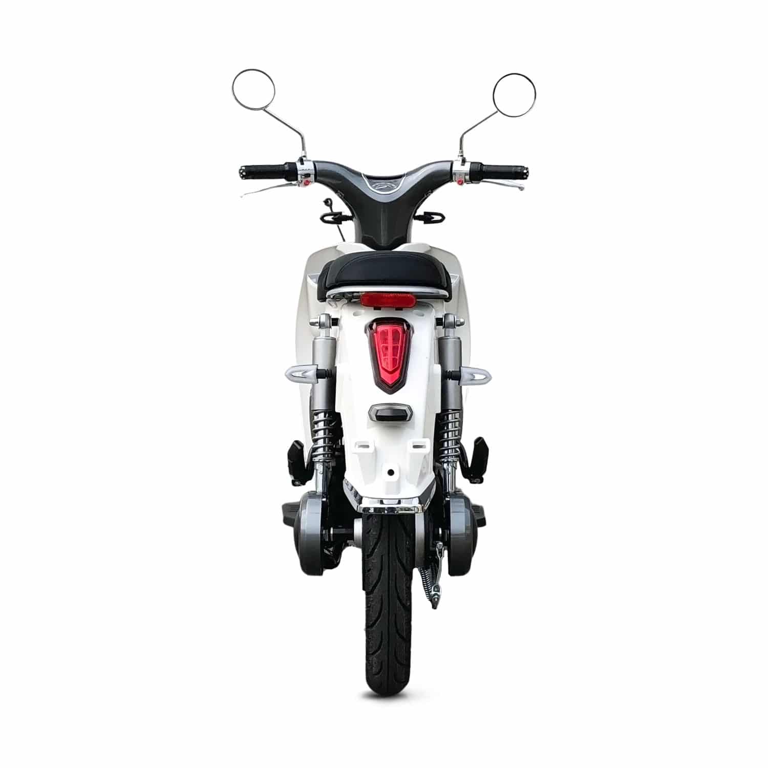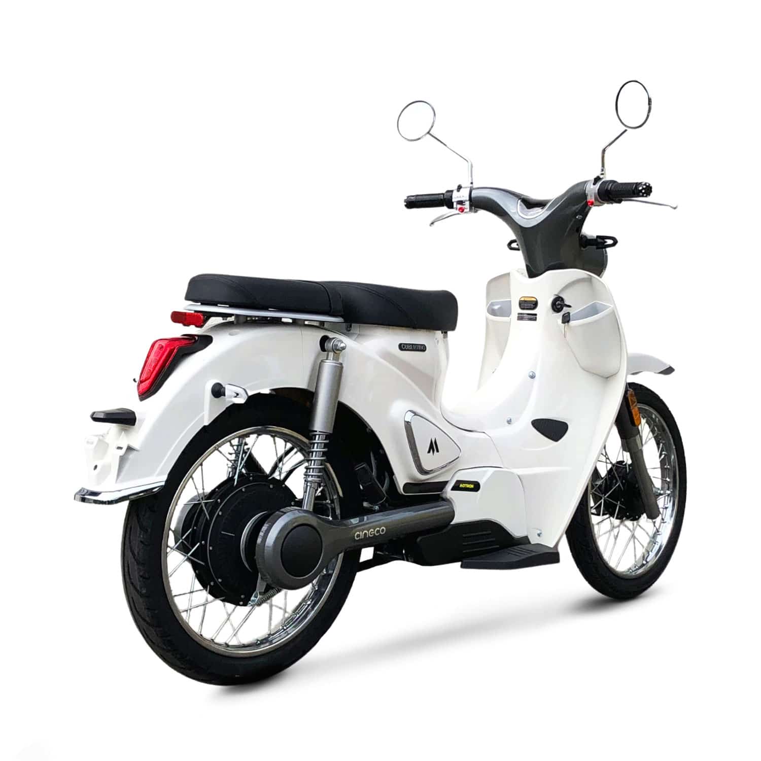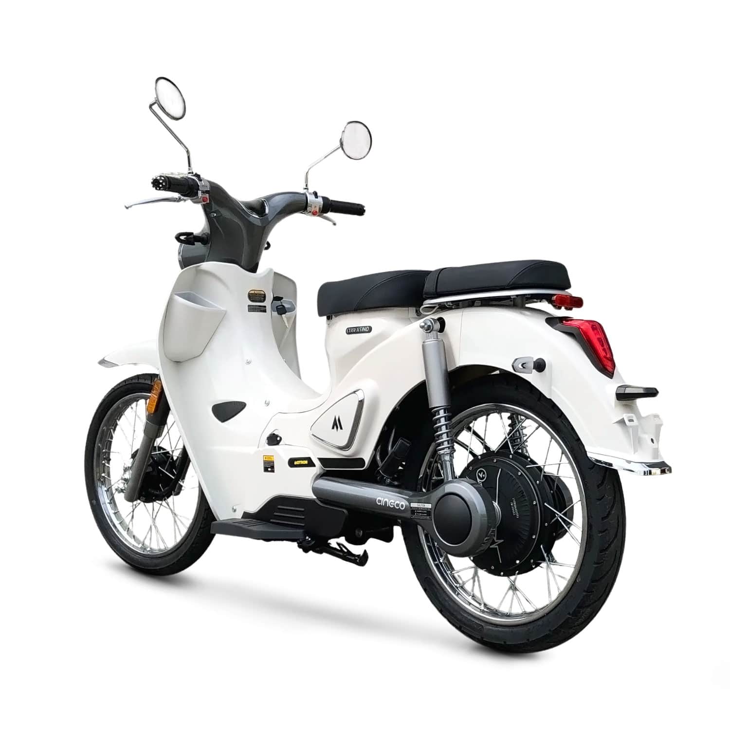 Le moteur équipant le Motron Cubertino est conçu par l’équipementier allemand Bosch. Il délivre 1500 W de puissance et est intégré à la roue arrière du scooter. Contrairement à un moteur thermique, celui-ci n’imposera presque aucun entretien à son propriétaire. Il est un moteur électrique économique de par sa nature, mais aussi du fait sa puissance : le Cubertino n’est pas le scooter équivalent 50 cm3 le plus puissant de notre catalogue. Toutefois, son comportement est plus que correct en ville. Il permet de se déplacer sereinement. Bien que tout sauf tonitruantes, les accélérations sont souples et fluides, sans surprise ni à coup. Pour en savoir plus sur les économies réalisables grâce à la conduite d’un scooter électrique, vous pouvez consulter notre simulateur d’économie.