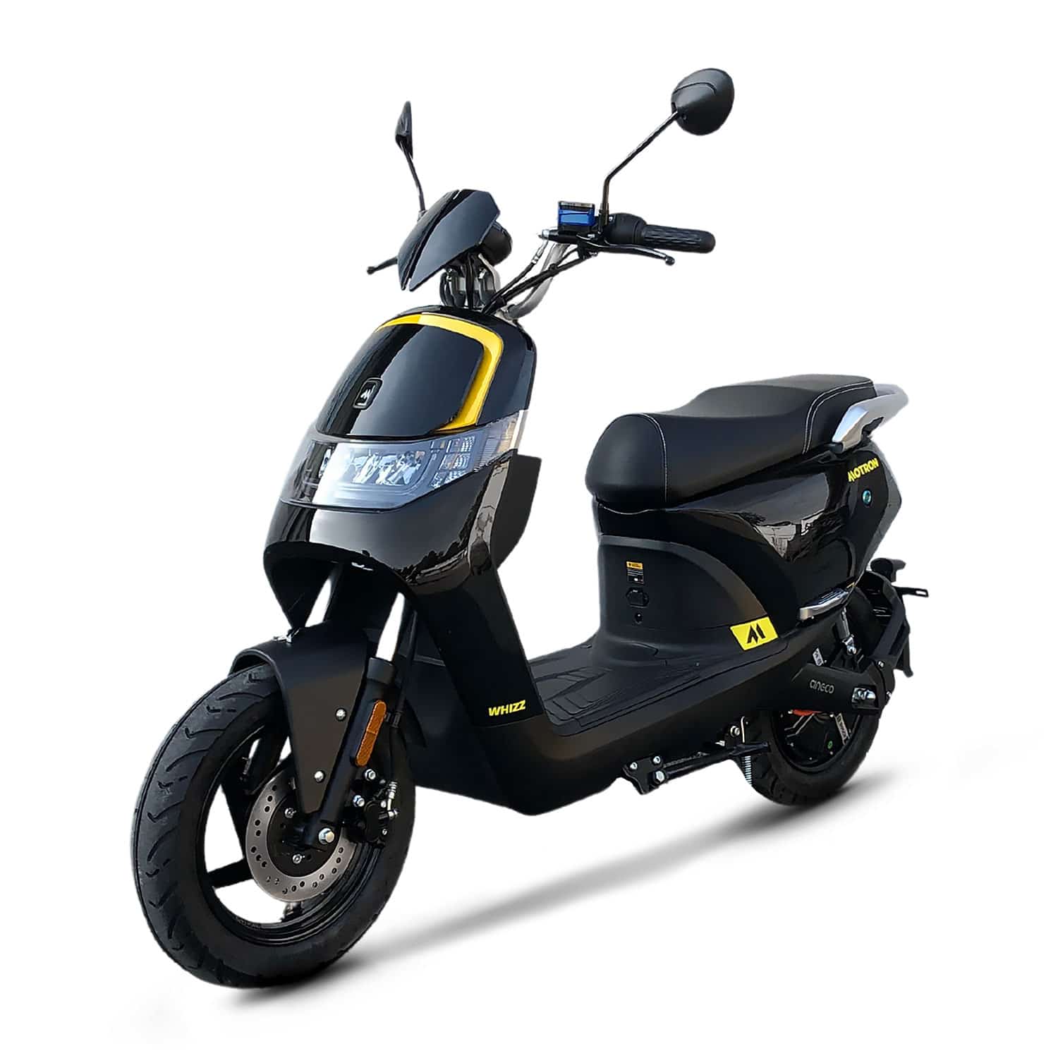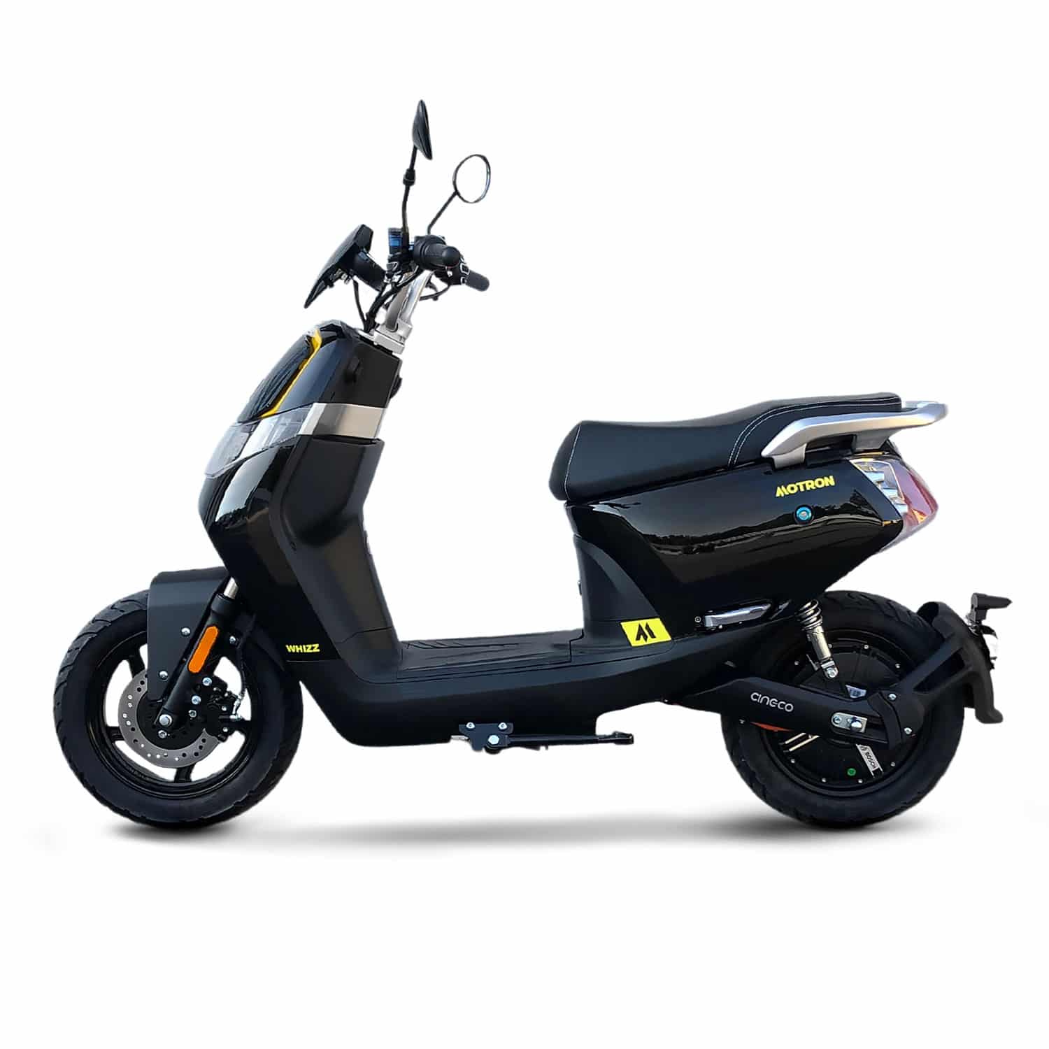 Le moteur du Motron Whizz est intégré en roue arrière. Fourni par l’entreprise Bosch, il présente une puissance de 2 000 Watts. Cette puissance place le Whizz dans la moyenne des scooters électriques de sa catégorie. Ses accélérations sont satisfaisantes, toujours supérieures à celle d’un scooter thermiques quatre temps 50 cm3. Toutefois, il se fera aisément distancer par des deux roues électriques au moteur plus pêchu, tels le Rider 3000W. Au quotidien, il est également très économique : réaliser 100 kilomètres au guidon du Whizz vous coûtera environ 0.40 € d’électricité. Pour en savoir plus sur les économies réalisables grâce à la conduite d’une moto électrique, vous pouvez consulter notre simulateur d’économie.