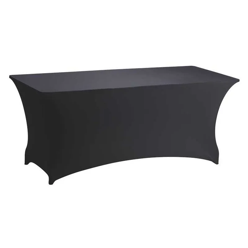 Cette housse noire est très pratique pour recouvrir vos tables et en faire des tables de buffets. Très simple à utiliser il suffit de l’enfiler sur la table. Ces housses sont fabriquées en lycra, une matière très extensible. Cela rend ces housses utilisables sur des tables de longueur variable (idéalement entre 70cm et 90 cm de large) et de hauteur variable (90 à 95cm, hauteur habituelle pour une table de buffet).