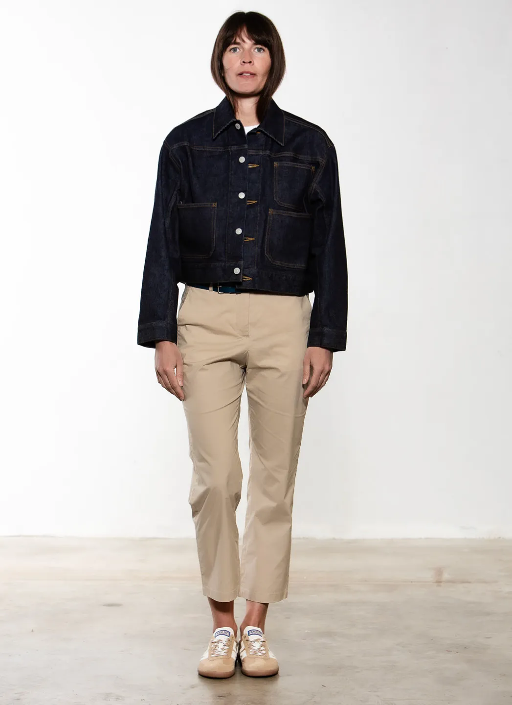 La veste Hope de Nicholson & Nicholson est une veste inspirée des vêtements de travail authentiques. Le denim est conçu au berceau du jean à Okayama. La coupe est droite et courte ce qui lui donne beaucoup d’allure et le style est décontracté.