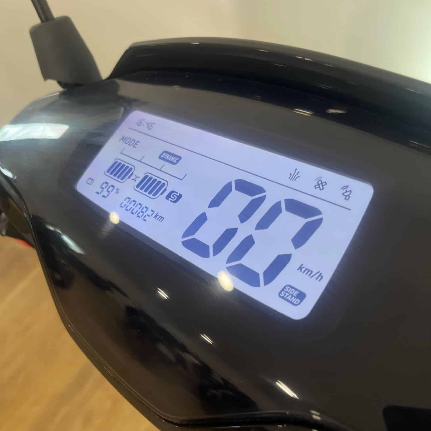 Le tableau de bord du MQi GT 45 et 70 km/h est simple, clair et complet. Certains pourraient regretter qu’il ne reprenne pas les caractéristiques colorées de la gamme NQi. C’est une question de goût. Pour autant, il reçoit les mêmes informations que ce dernier : kilométrage instantané, odomètre, état de charge des batteries et mode sélectionné.