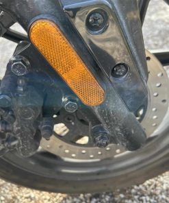 Hydraulique, le freinage est assuré par un disque de 220 mm à l’avant et de 180 mm à l’arrière. Ceux-ci fonctionnent de manière synchronisée via un système couplé « EBS ». Grâce à ce système, à 30 km/h, un pilote de 75 kg mettra 2,61 mètres pour s’arrêter complètement sur sol sec. Grâce à ses grandes roues de 14 pouces de diamètre, le Niu MQi GT reste stable quelque soit la vitesse. Cette taille de roue lui apporte aussi une grande inertie.