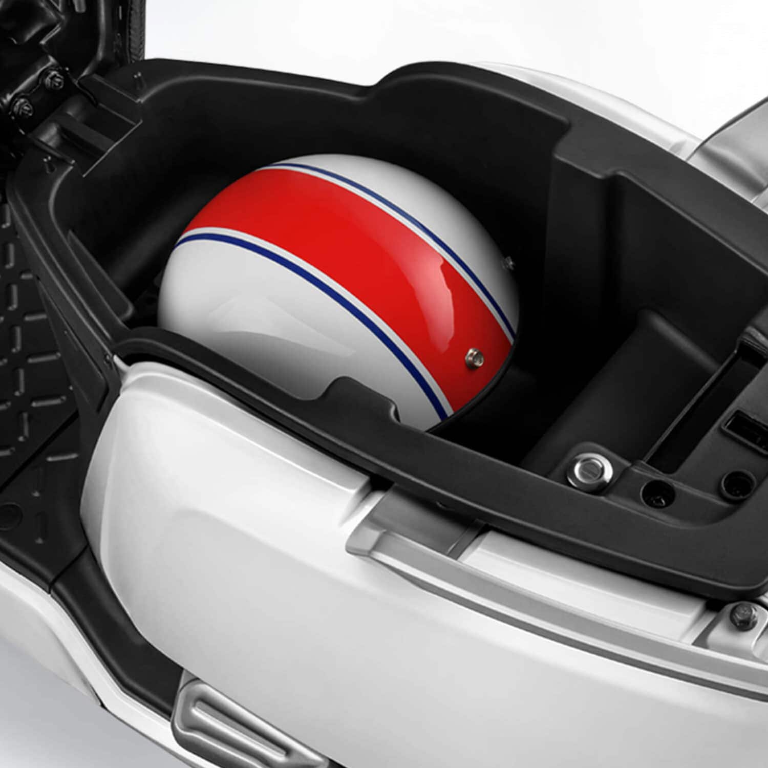 De plus, le Niu NQi Lite appuie son côté urbain et pratique en disposant d’une certaine capacité d’emport. Un emplacement sous la selle vous permet d’y loger votre casque. Un accroche-sac de série et le plancher plat corroborent cet aspect.