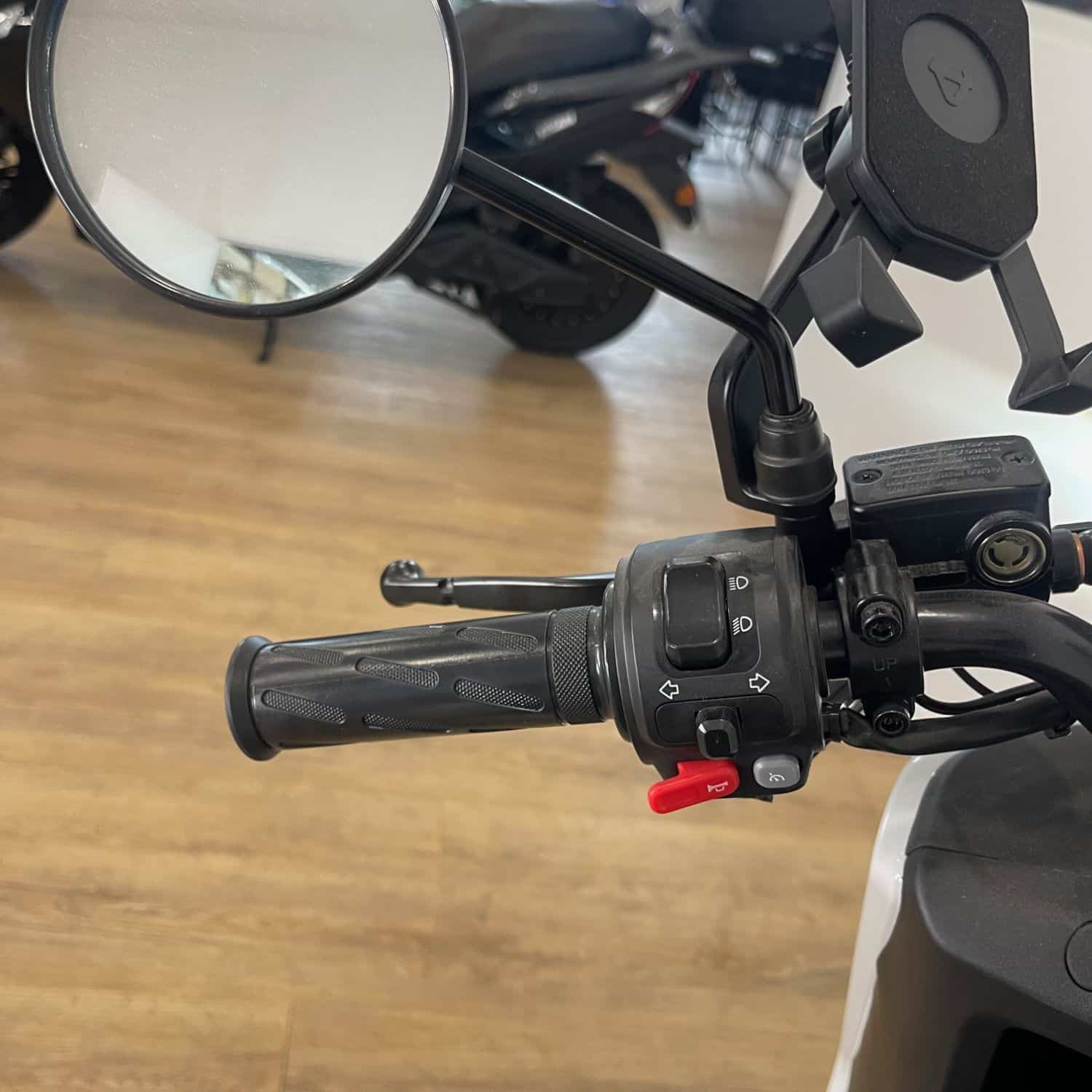Côté équipement électrique, le Niu NQi Sport est conforme aux standards de son époque : éclairage intégralement LED, connecteur USB permettant de recharger un smartphone. Grâce au support smartphone Niu, on pourra donc utiliser son téléphone comme un GPS.