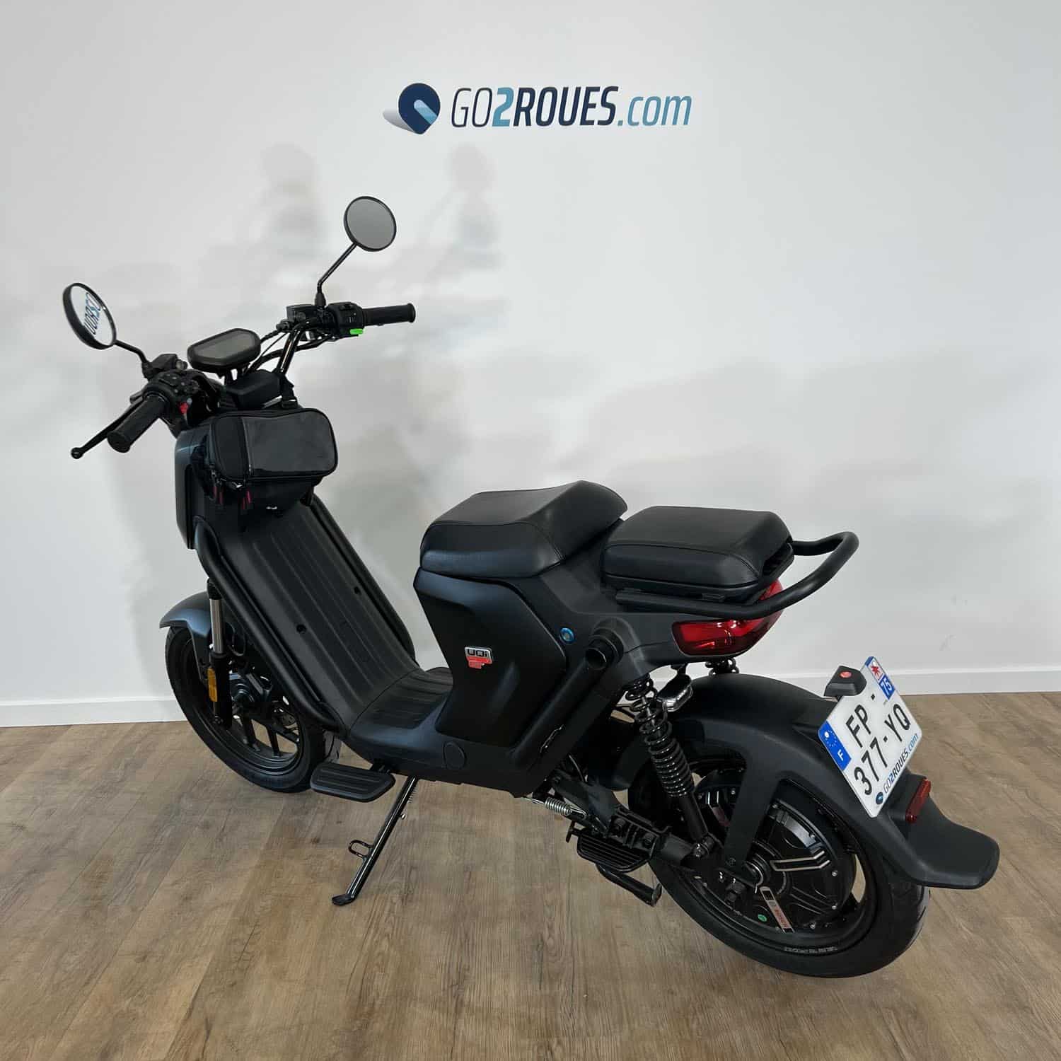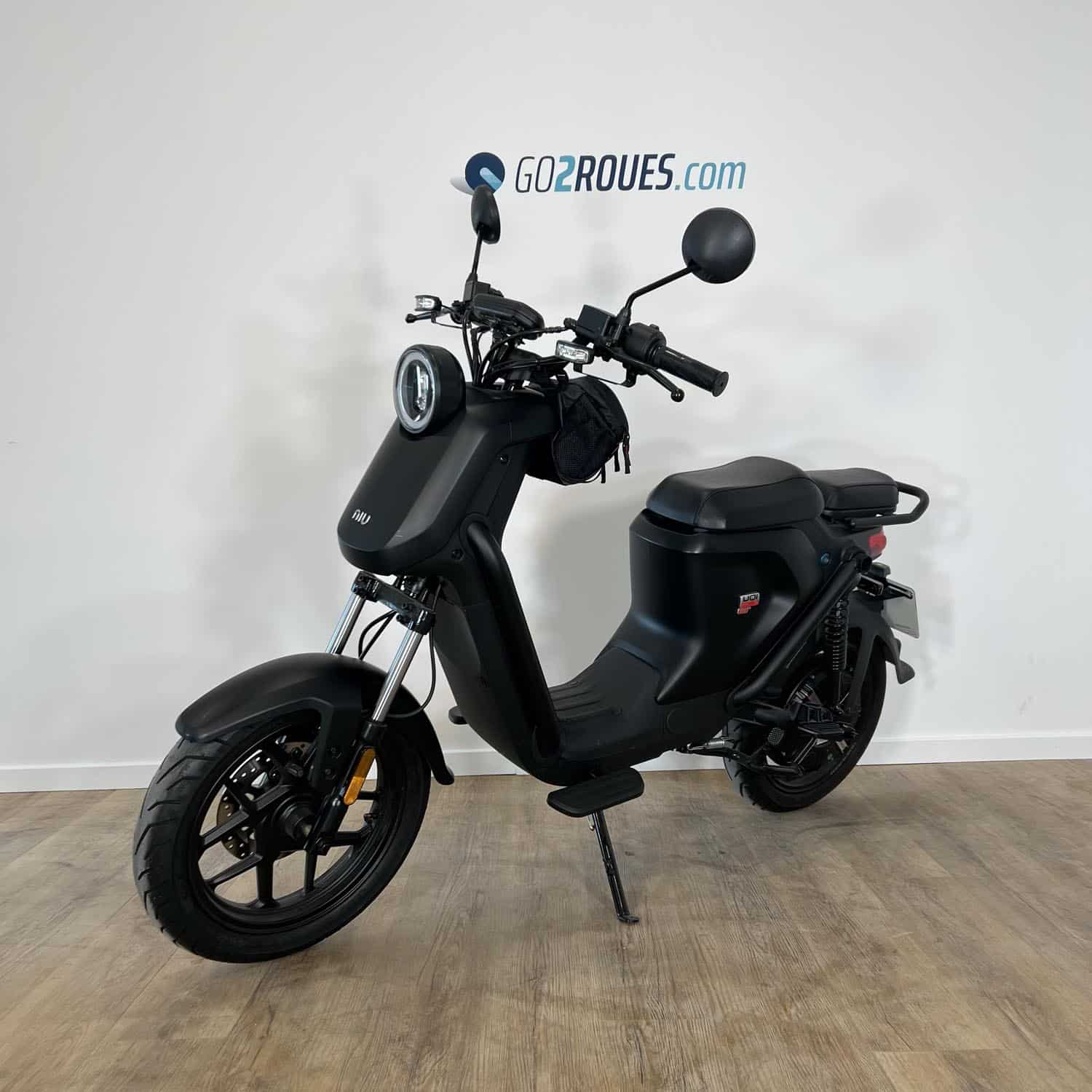 Ce véhicule électrique d’occasion Niu UQi GT 60 km d’autonomie est en bon état. Il affiche 339 kilomètres au compteur et est garanti pièce et main d’œuvre durant un an suite à la date de votre commande. Occasion Go2roues, avant de vous être proposé, il a été contrôlé sur 57 points. La partie cycle, moteur, éclairage, batterie et autonomie ont notamment été vérifiés par nos techniciens spécialisés.