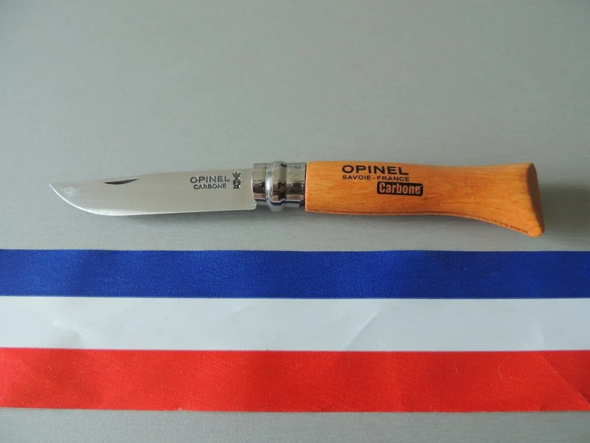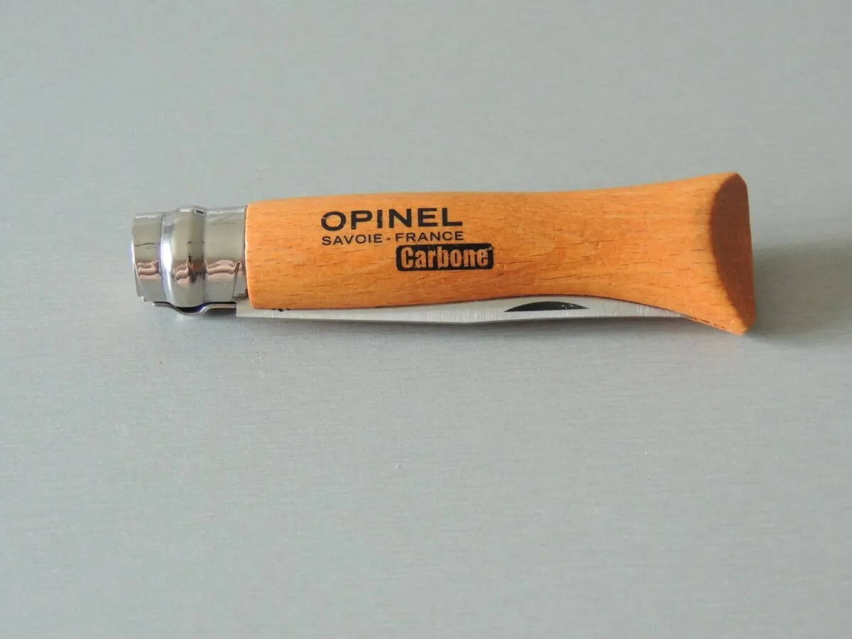 - L’acier au carbone Opinel est un acier non allié, à haute teneur en carbone permettant d’obtenir après l’opération de traitement thermique l’excellente dureté qui garantit une parfaite tenue du tranchant ainsi qu’une grande résistance à l’usure et un réaffûtage facile. Cependant l’acier au carbone ayant une faible résistance à la corrosion par l’humidité, il nécessite des précautions d’utilisation : ne laissez pas votre couteau en milieu humide notamment en lave-vaisselle, essuyez la lame avec un chiffon gras après usage et graissez la souvent ainsi que son articulation.