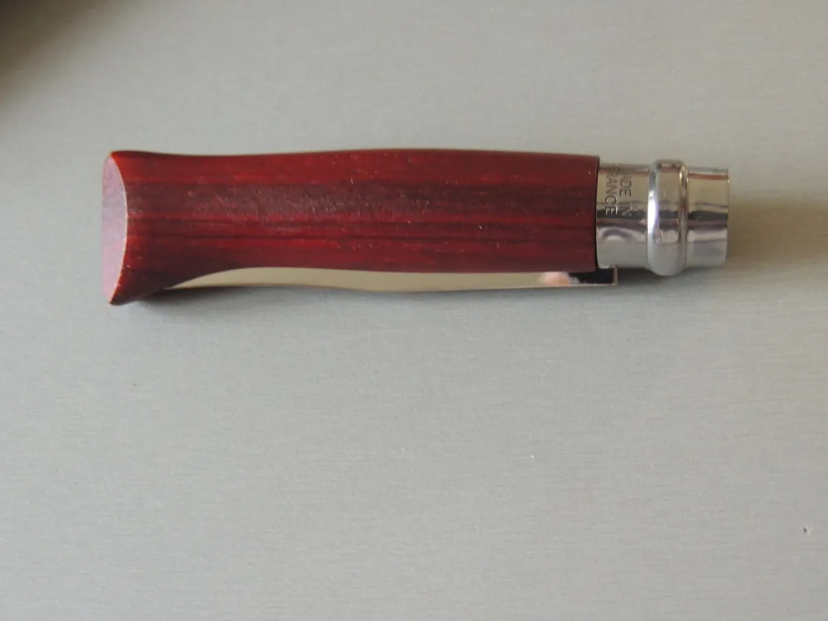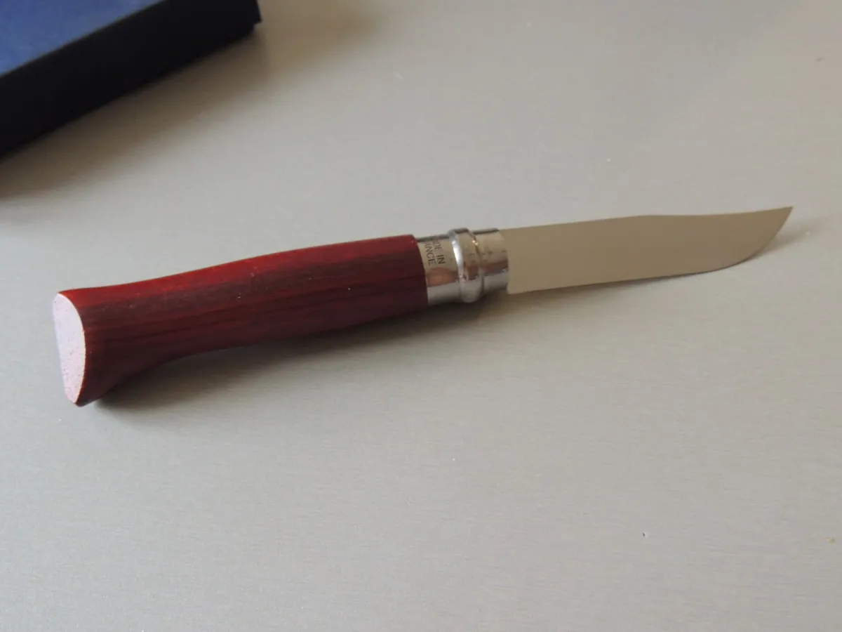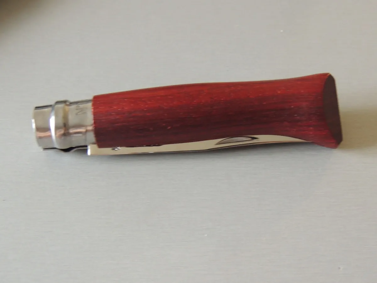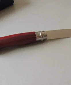 Avec une lame poliglace en acier Inox, ce couteau offre un tranchant et une facilité d’entretien remarquable. La forme du manche developpée par Opinel promet à l’utilisateur une saisie idéale. Toujours accompagné par sa bague de sécuité Virobloc®, le N°08 propose une bonne fiabilité. Le Padouk résiste bien à l’humidité.