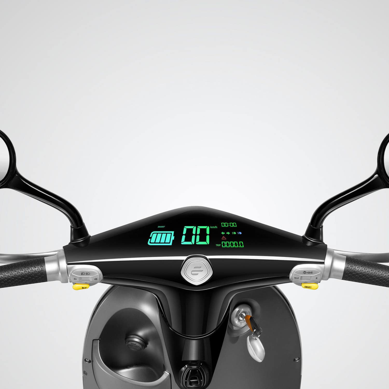 On peut qualifier le Orcal ecooter E1 de scooter électrique de 2ème génération, car il embarque à peu près toutes les dernières innovations en matière de scooter électrique équivalent 50 cm3. Jugez plutôt : application à distance Android ou Ios, fonctionnalités bluetooth, ouverture de son coffre à distance, prise USB, marche arrière, Smart Key, …
