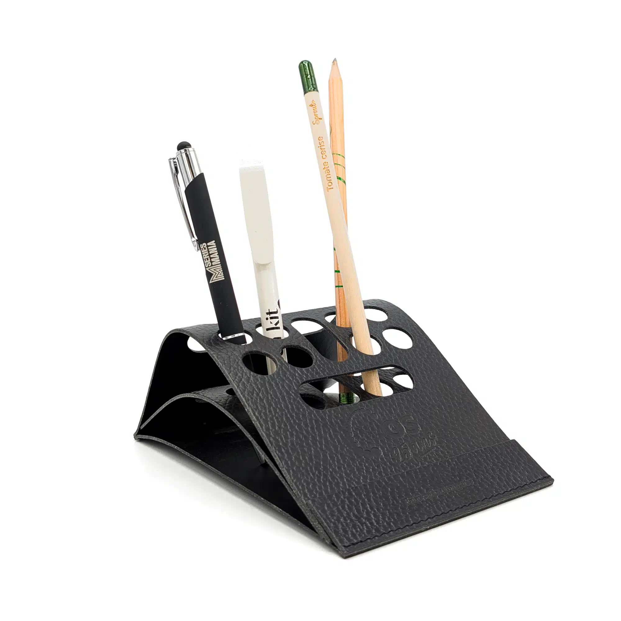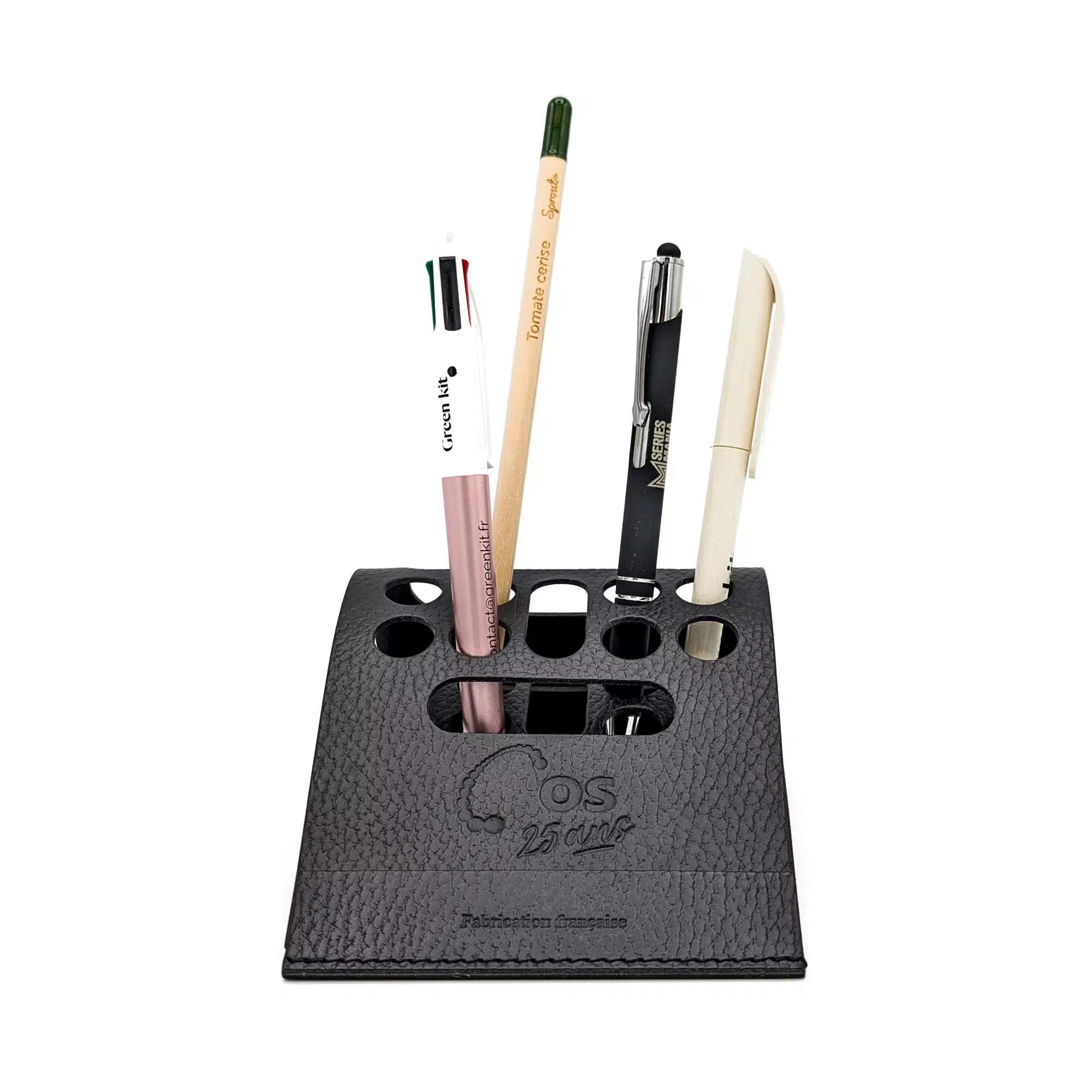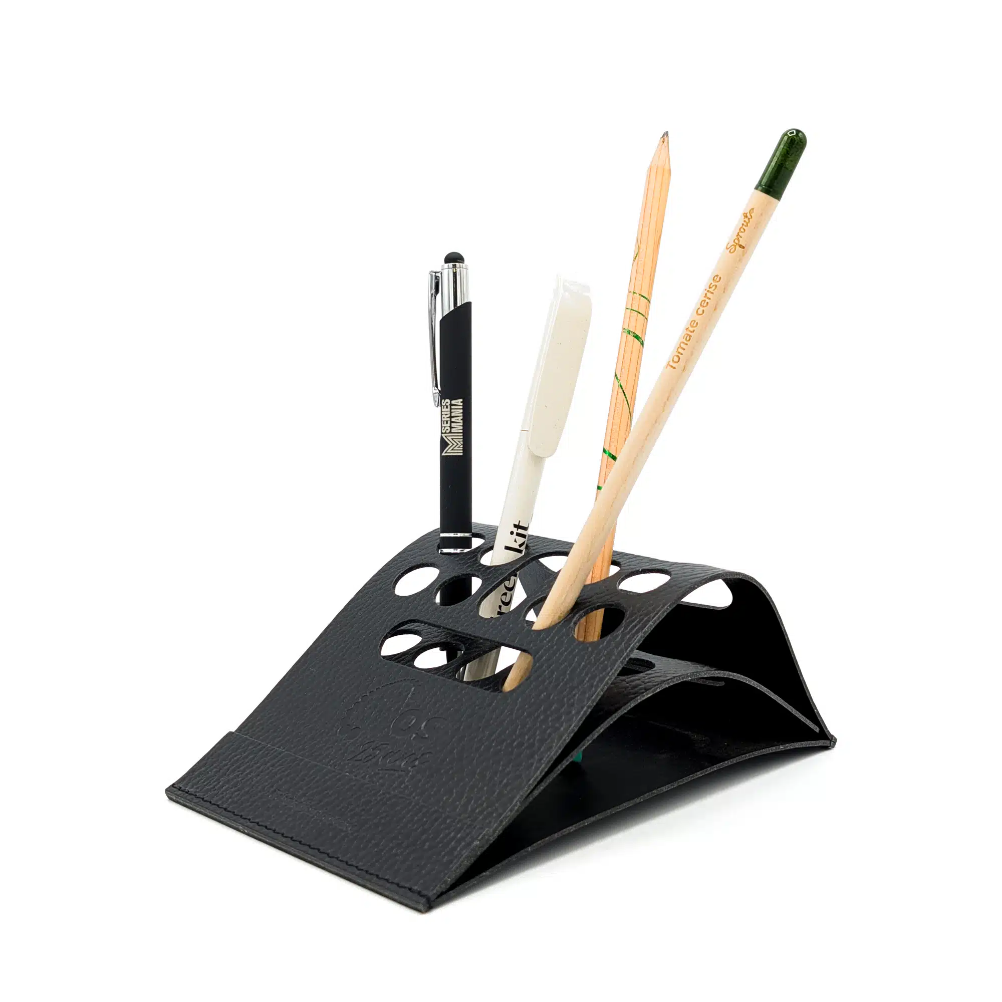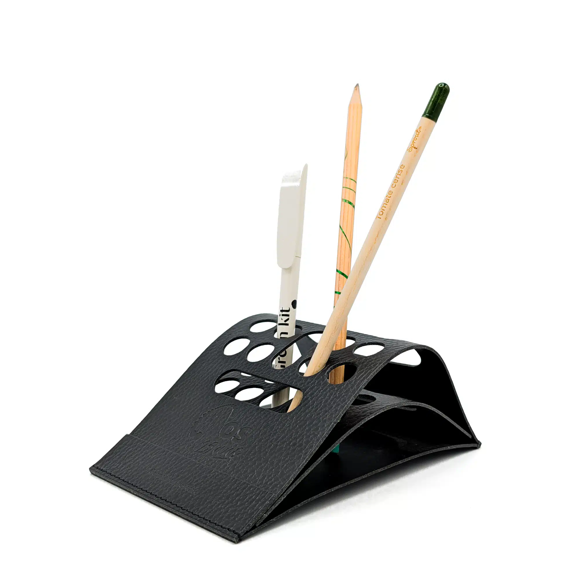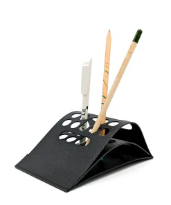 Cet organisateur de bureau en cuir recyclé est un accessoire sophistiqué et pratique conçu pour structurer votre espace de travail avec élégance. Son format compact de 11 x 20 cm permet d’accueillir stylos, cartes de visite, notes et autres petits accessoires tout en offrant une finition haut de gamme.