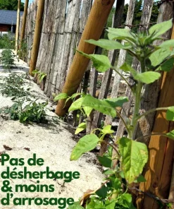 - Il maintient le sol frais et humide, essentiel pendant les périodes chaudes. Les racines restent bien hydratées !