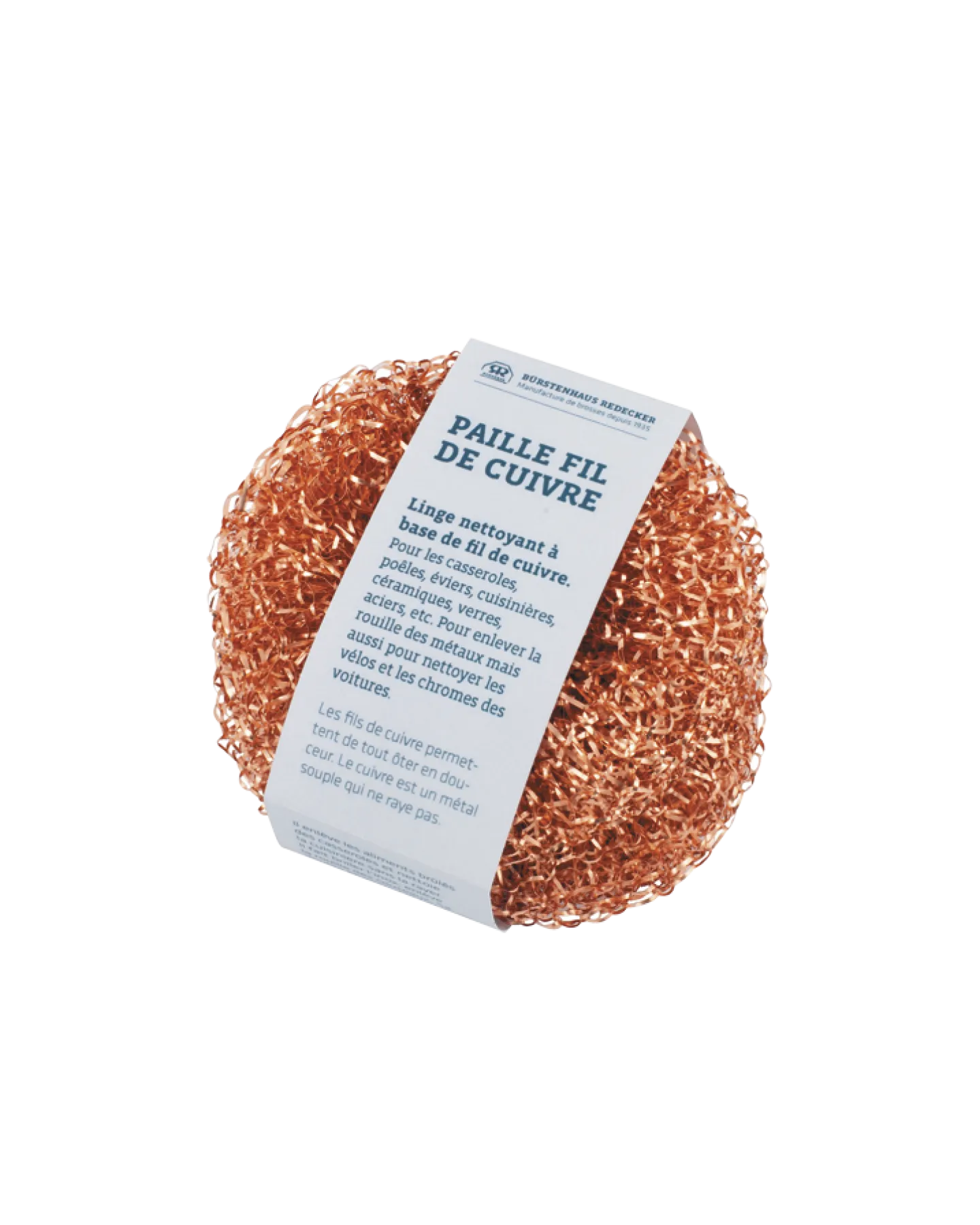 De petits fils de cuivre arrachent la crasse la plus tenace en douceur. Car le cuivre est un métal mou qui ne raye pas. Il ne laisse aucune rayure sur l’émail et la vitrocéramique et fait briller vos objets !