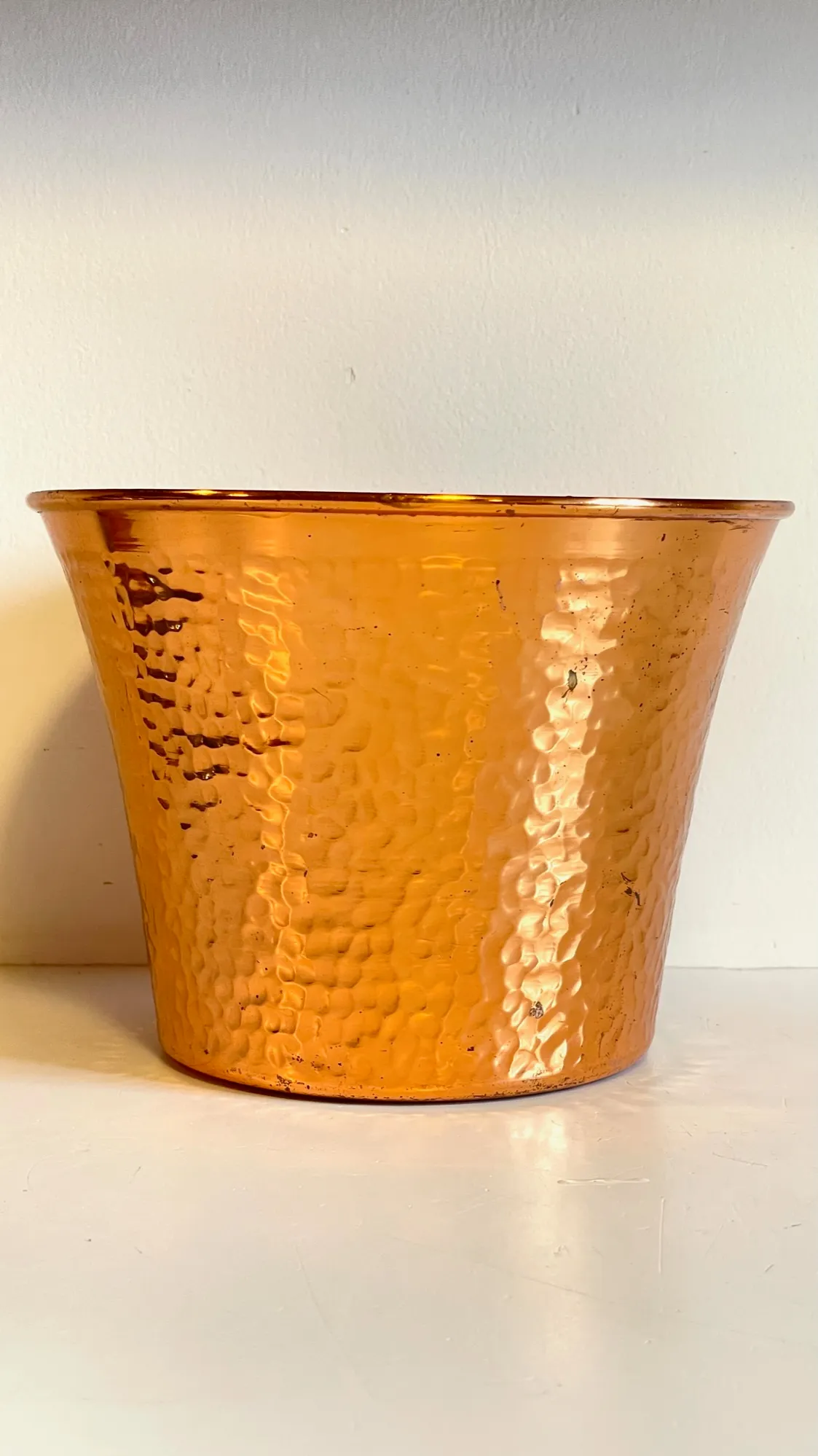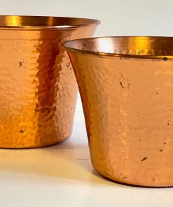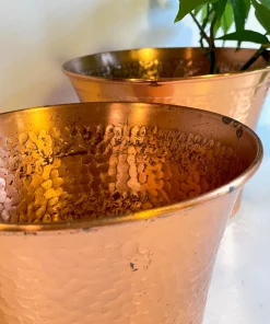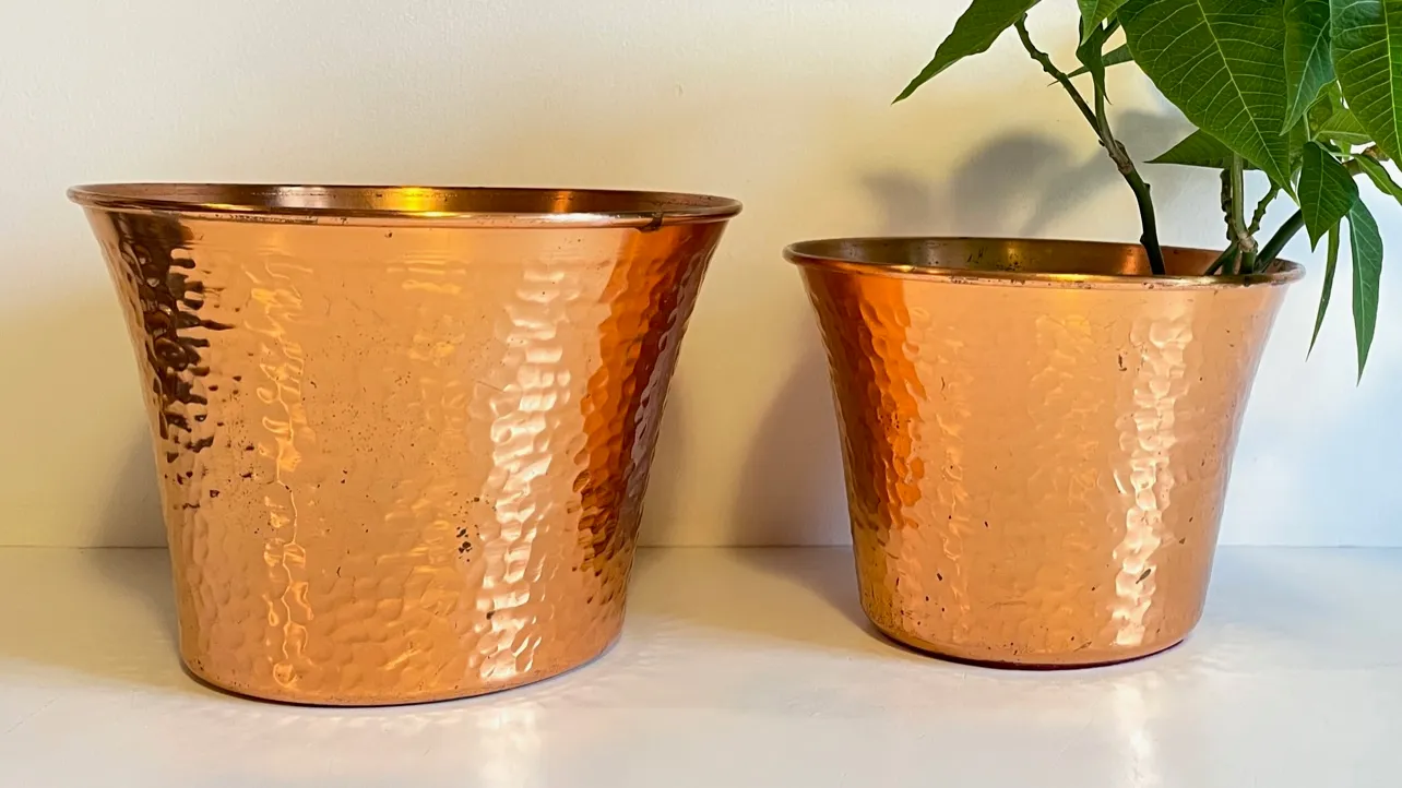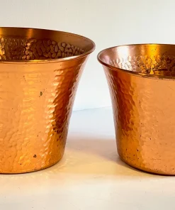 Très belle Paire de CACHE-POT en CUIVRE des Années 60, une Duo Chic et de Caractère pour nos Plantes mais aussi pour le Rangement, comme Pot sà Couture ou Tricots pour le Salon, pots à Gants et Bonnets pour l’Entrée … ils nous inspirent !