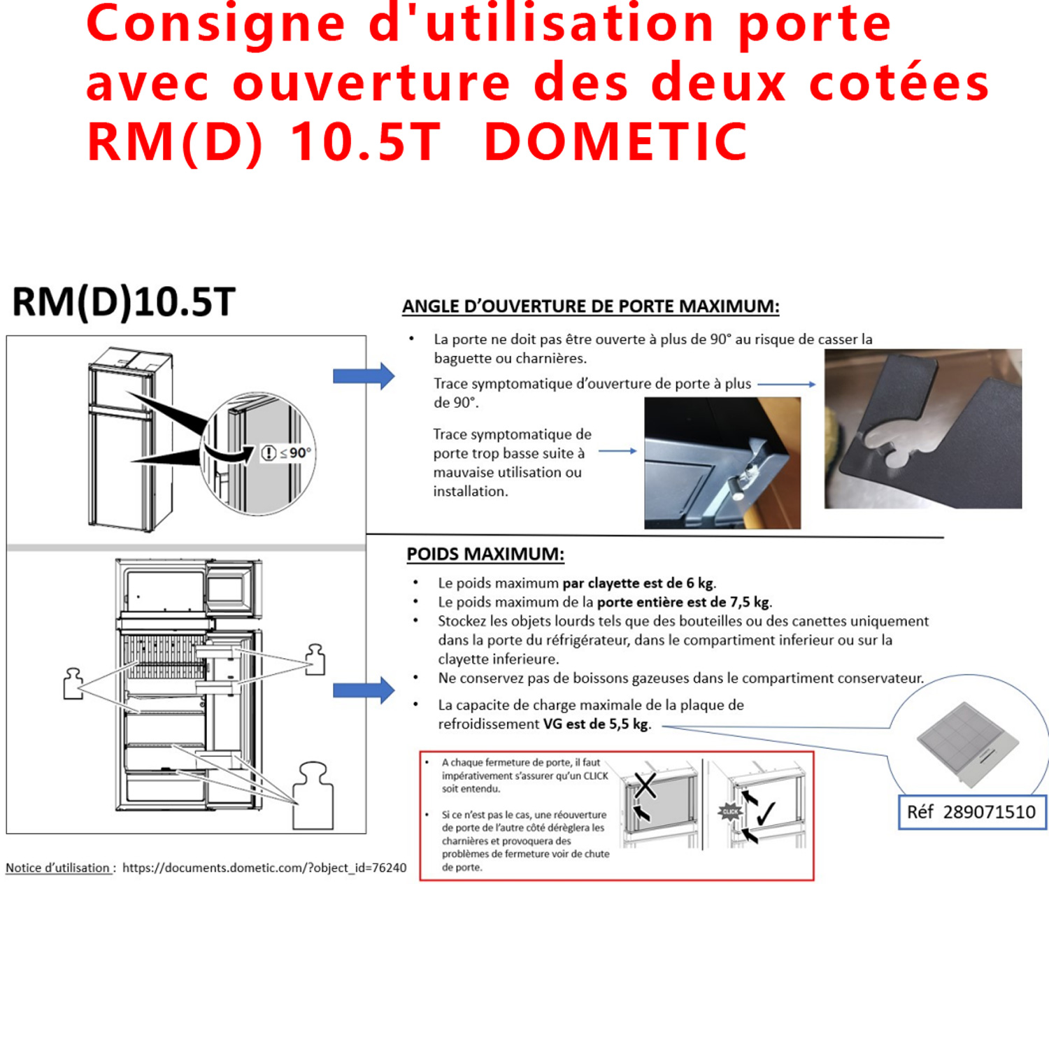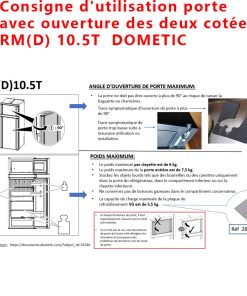 Pour vérifier si votre refrigerateur comporte bien cette charniere, merci de nous contacter et munissez vous pour vérifier la compatibilité de votre numéro de produit de votre appareil Dometic (qui se trouve sur l’étiquette signalétique ).