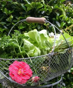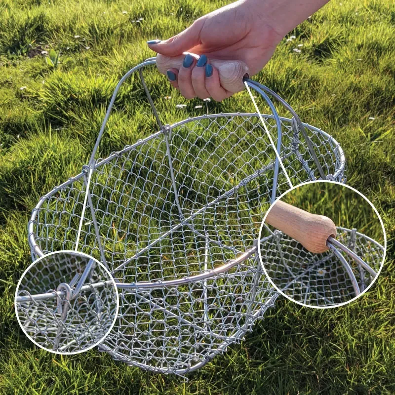 Lorsque vous posez votre panier de récolte au sol, ce dernier repose sur l’armature extrêmement solide, et non directement sur le grillage intérieur.