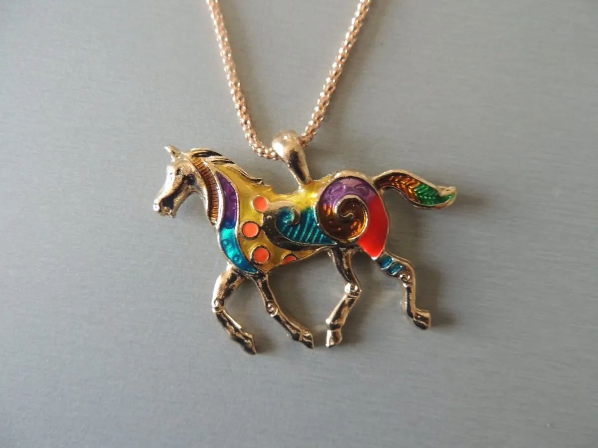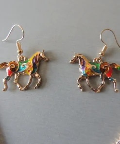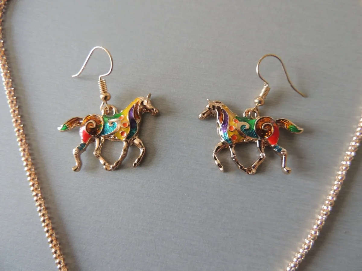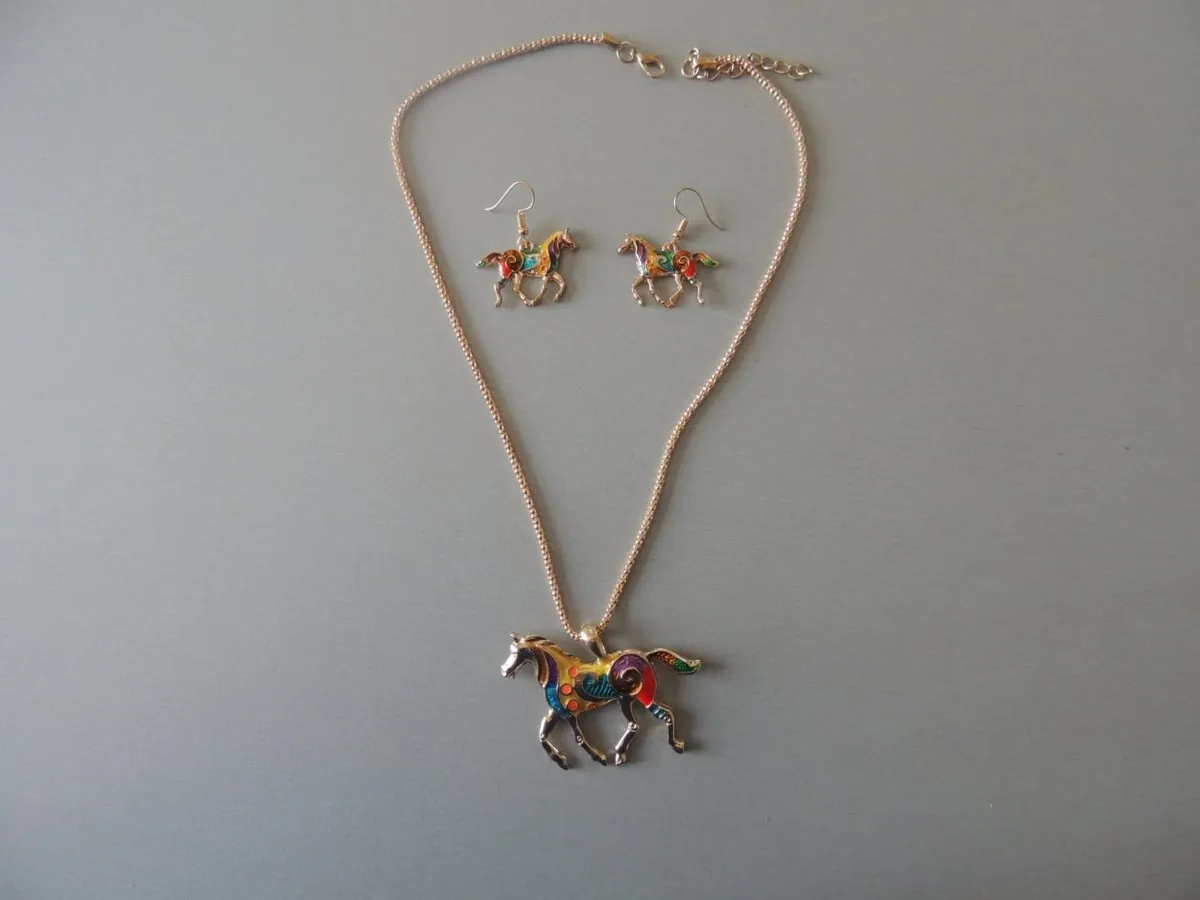 Parure Motif cheval multicolore, collier et boucles d’oreilles fantaisie.