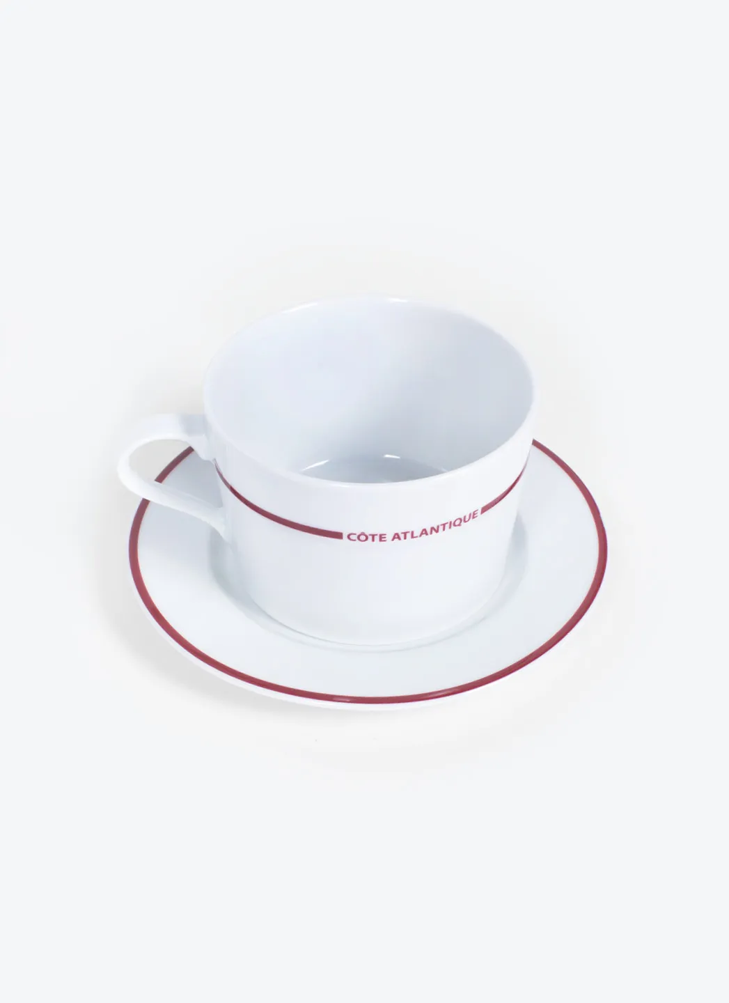 Petit déjeuner en porcelaine blanche avec une impression rouge « Côte Atlantique » fabriqué au Portugal dans la région de Porto. Un accessoire indispensable pour votre table.