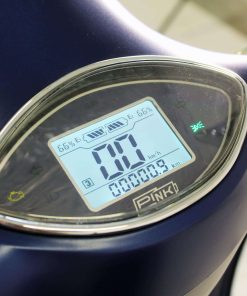 Le compteur LCD du Pink Mobility Pink Style est monochrome, simple, mais lisible et relativement complet. On y trouve la vitesse instantanée, l’état de charge de la batterie, le mode sélectionné et un odomètre. Enfin, on apprécie la présence d’un port USB.