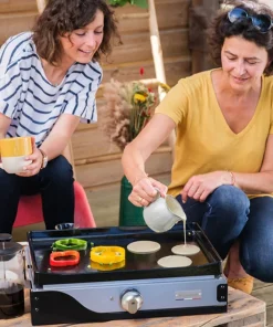 Retrouvez les saveurs de vos aliments avec cette plancha gaz et sa plaque de cuisson en fonte émaillée. Châssis en acier noir. Surface de cuisson 57 x 38 cm, idéale pour 8 à 10 convives. Puissance 5000 W. Chauffe à 300°C en 10 minutes. Fonctionne au gaz butane ou propane. Dimensions 63.2 x 47.8 x 19.4 cm. Poids 19 kg.