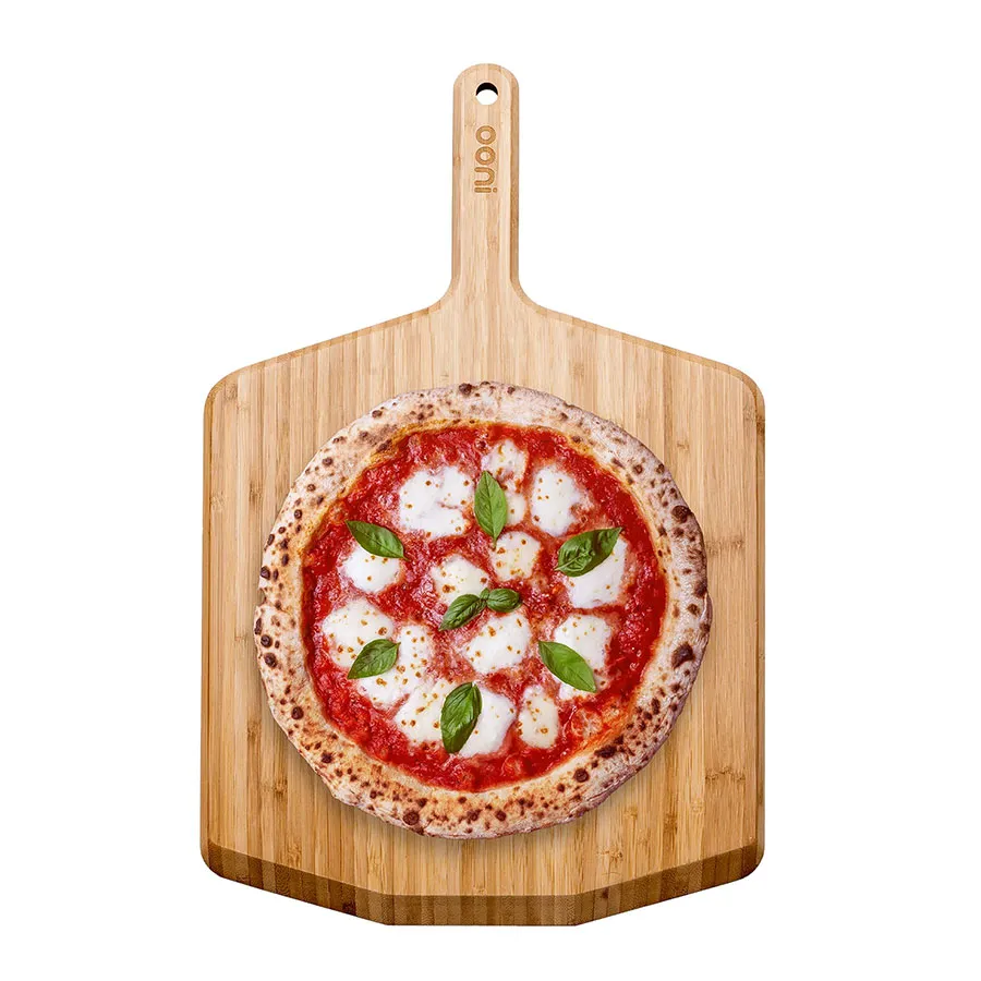 Parfaite pour enfourner et récupérer vos pizzas. Très utile pour un servir et découper vos pizzas. Fabriquée en bambou. Dimensions 50,5 x 30,5 x 1,2 cm. Poids 0,72 kg.