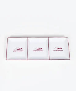 Plat à tapas en porcelaine blanche avec une impression rouge « Côte Atlantique » fabriqué au Portugal dans la région de Porto. Un accessoire indispensable pour votre table.