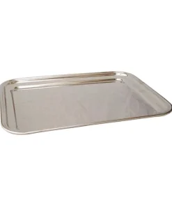 Plateau de service rectangulaire en inox de 45x35cm. Ce plateau en inox à les dimensions idéales pour le service des boissons, des zakouskis, apéritifs,…