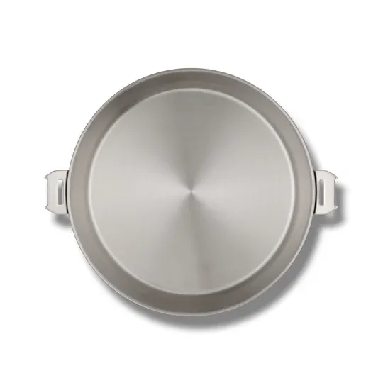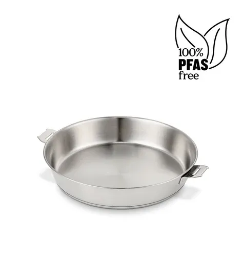 Poêle à frire triple fond capsulé compatible tous feux et four jusqu’à 200°C. Nettoyage facile au lave-vaisselle.