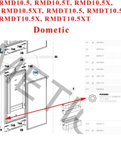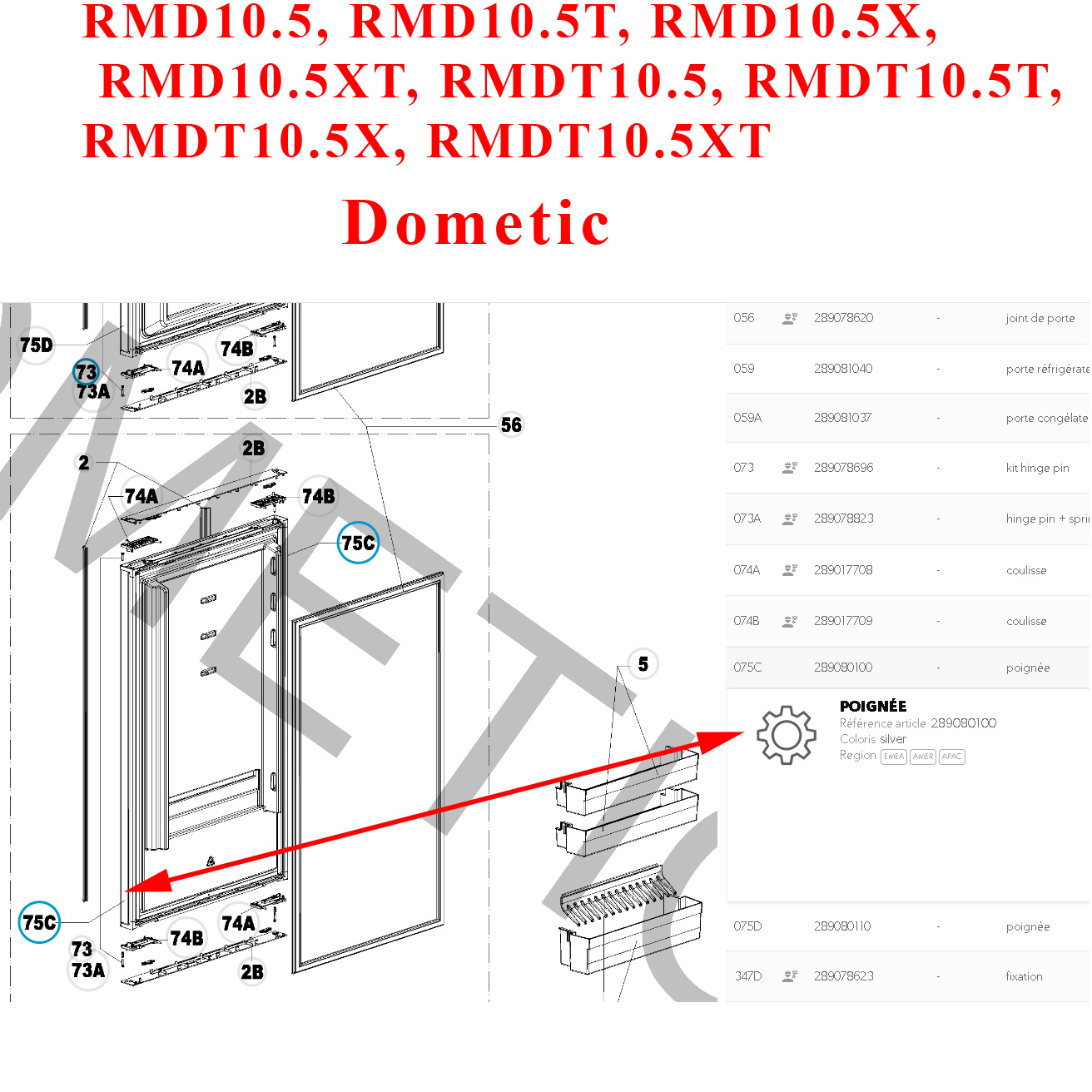 Une poignée de la porte du réfrigérateur RMD10.5x, RCD10.5T, RCD10.5XT, RMD10.5, RMD10.5T, RMD10.5X, RMD10.5XT, RMDT10.5, RMDT10.5T, RMDT10.5X, RMDT10.5XT Dometic