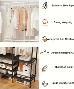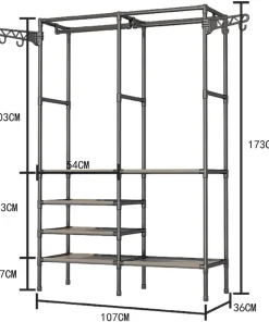 * Le placard autoportant à double tige ne nécessite aucun assemblage d’outil et peut être facilement installé.