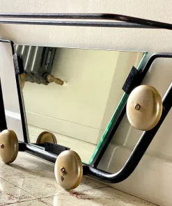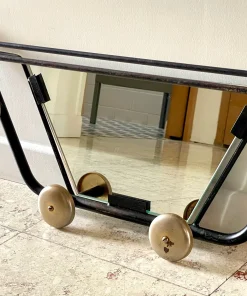 Très bon état, 1 patine qui ajoute à son charisme (visible sur les photos), Miroir biseauté ( 1 légère griffure vers le centre bas).