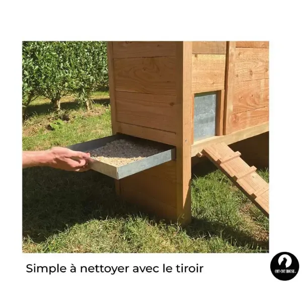 - Perchoir, pondoir et une rampe d’accès pour le bien-être des cocottes
