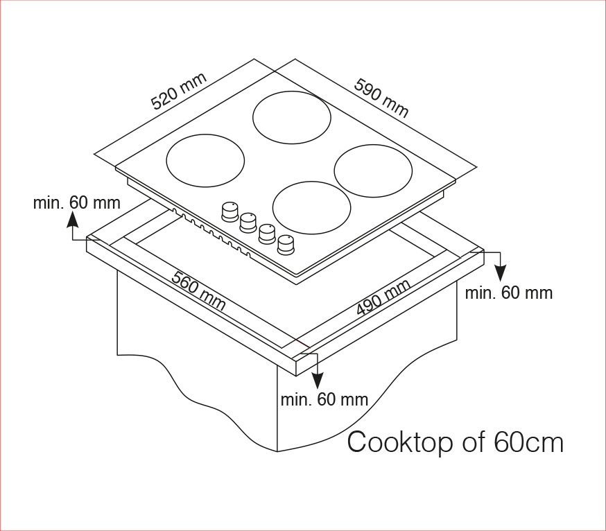 proff f617 plaque encastrable éléctrique vitro ceramique 4 feux