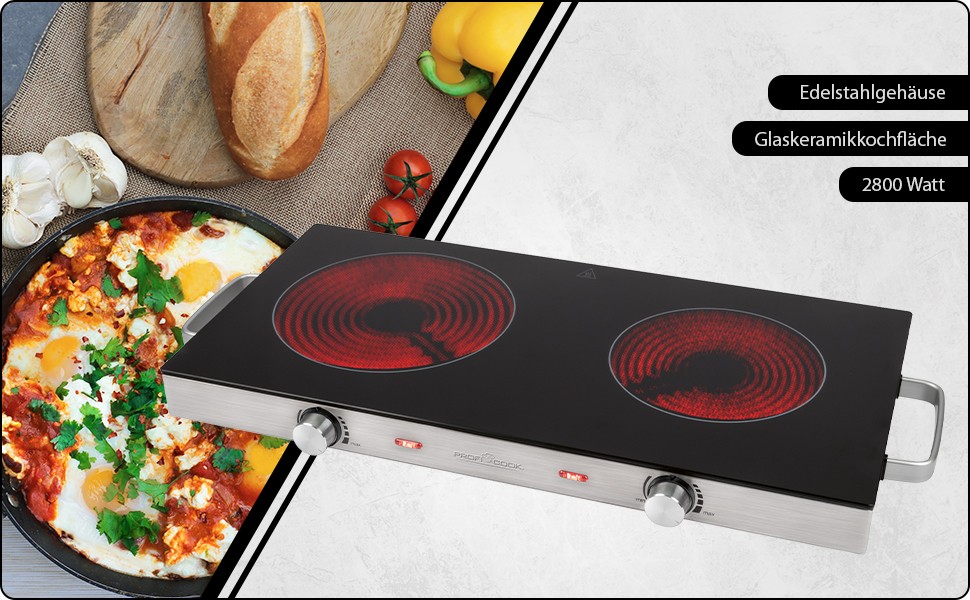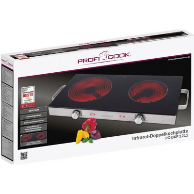 ProfiCook PC-DKP 1211 Double plaque de cuisson infrarouge Convient à tous les types de casseroles, plaques vitrocéramiques, 2800 watts, boîtier en acier inoxydable