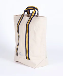 Le School Bag est le tote bag vertical et constitue une solution quotidienne pour transporter de la littérature étudiante ou simplement une serviette et un maillot de bain pour les baignades rapides de l’après-midi.