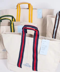 Avec les cabas Puebco, c’est toute l’ambiance des campus américains que vous allez retrouver. Fabriqués dans un coton blanc épais et résistant sur lequel ont été apposées de belles sangles bicolores, ils répondent à tous les usages : marché, école, voyage…Portés à la main ou à l’épaule vous allez adorer ces tote bags aussi pratiques qu’élégants.