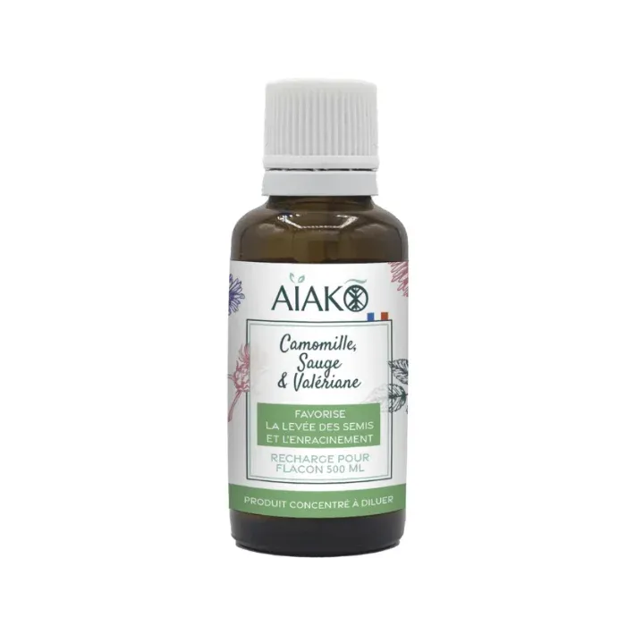 Donnez un nouveau souffle à votre jardin avec la recharge concentrée camomille, sauge et valériane, 100% bio !