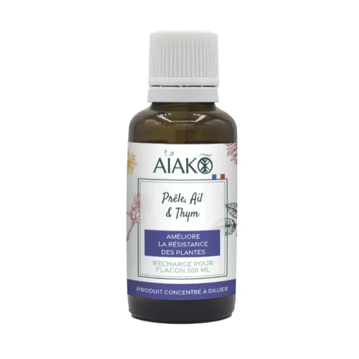 Découvrez la recharge concentrée de 30 mL aux extraits de prêle, thym et ail. Préparez en moins d’une minute une solution de 500 mL, 100% bio, pour un jardin écoresponsable et en pleine santé !