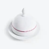 Repose Sachet de Thé en porcelaine blanche et rouge fabriqué au Portugal pour le Magasin Central.
