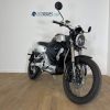 La batterie, située sous la selle, se recharge en 5 heures environ. La batterie est amovible, vous pouvez l’emmener pour la recharger chez vous ou au bureau, sur une prise 220V classique. Assez lourde (environ 12 kg), elle présente néanmoins l’avantage d’être facilement extractible. L’espace situé au dessus de la batterie permet d’accueillir un casque Jet sous la selle.