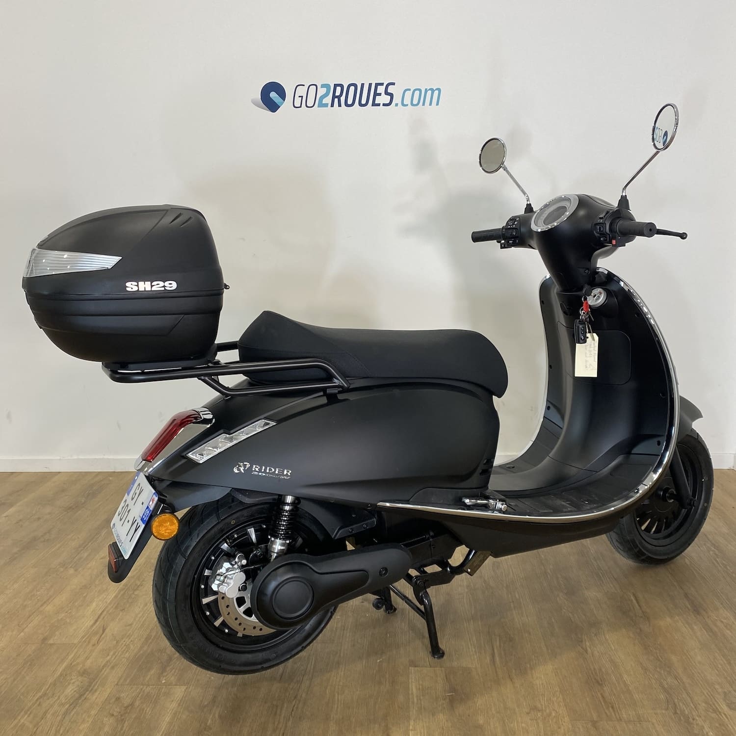 Ce véhicule électrique d’occasion Rider 3000W Noir Mat est en bon état. Il affiche 106 kilomètres au compteur et est garanti pièce et main d’œuvre pendant 06 mois après la date de votre commande. Si la date de mise en circulation du véhicule est inférieure à 2 ans, la garantie constructeur fait foi jusqu’au 2ème anniversaire de la date d’immatriculation du 2-roues. Occasion Go2roues, avant de vous être proposé, il a été contrôlé sur 57 points. La partie cycle, moteur, éclairage, batterie et autonomie ont notamment été vérifiés par nos techniciens spécialisés.