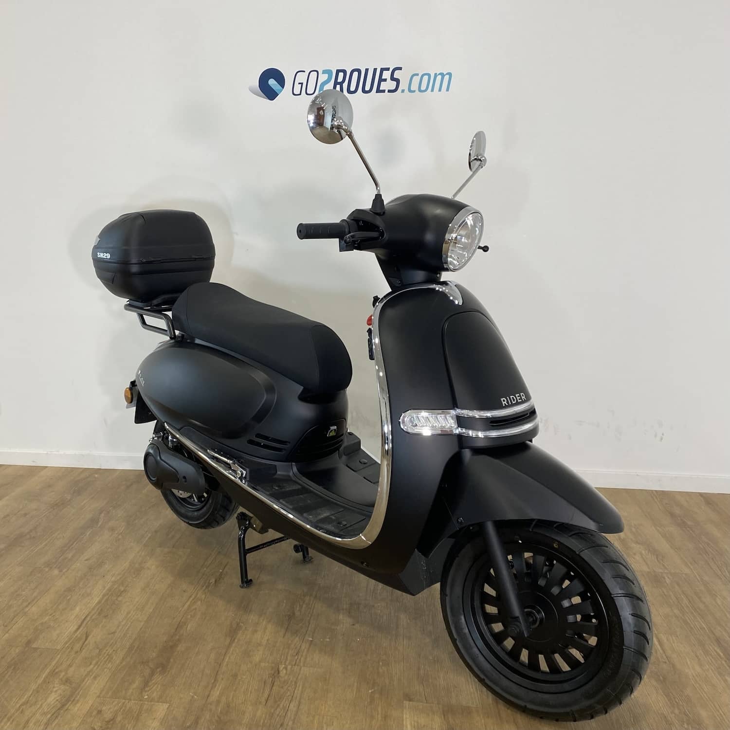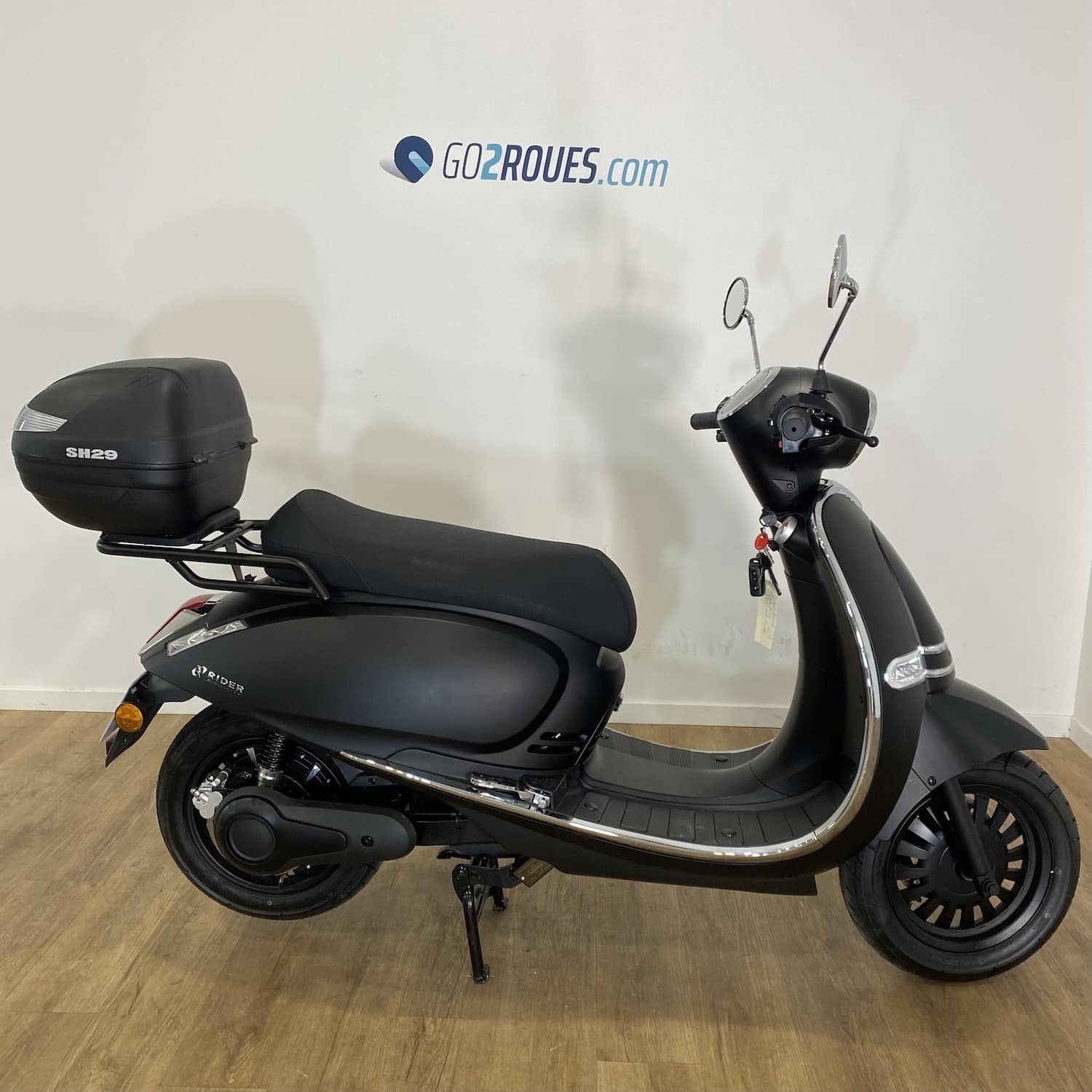 Faisant parmi des meilleures ventes de scooters électriques en France, le Rider 3000W est conçu avec la participation active de Go2roues. Tout comme l’ensemble des deux roues électriques de la marque Rider, il est le résultat d’un cahier des charges rigoureux et de plusieurs années de recherches et développement. Accessible sans permis, le Rider 3000W est un équivalent 50 cm3.