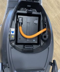 La batterie (présente de série, ainsi que son chargeur), située sous la selle, se recharge en 5 heures environ. Celle-ci est amovible. Vous pouvez l’emmener pour la recharger chez vous ou au bureau, sur une prise 220V classique.