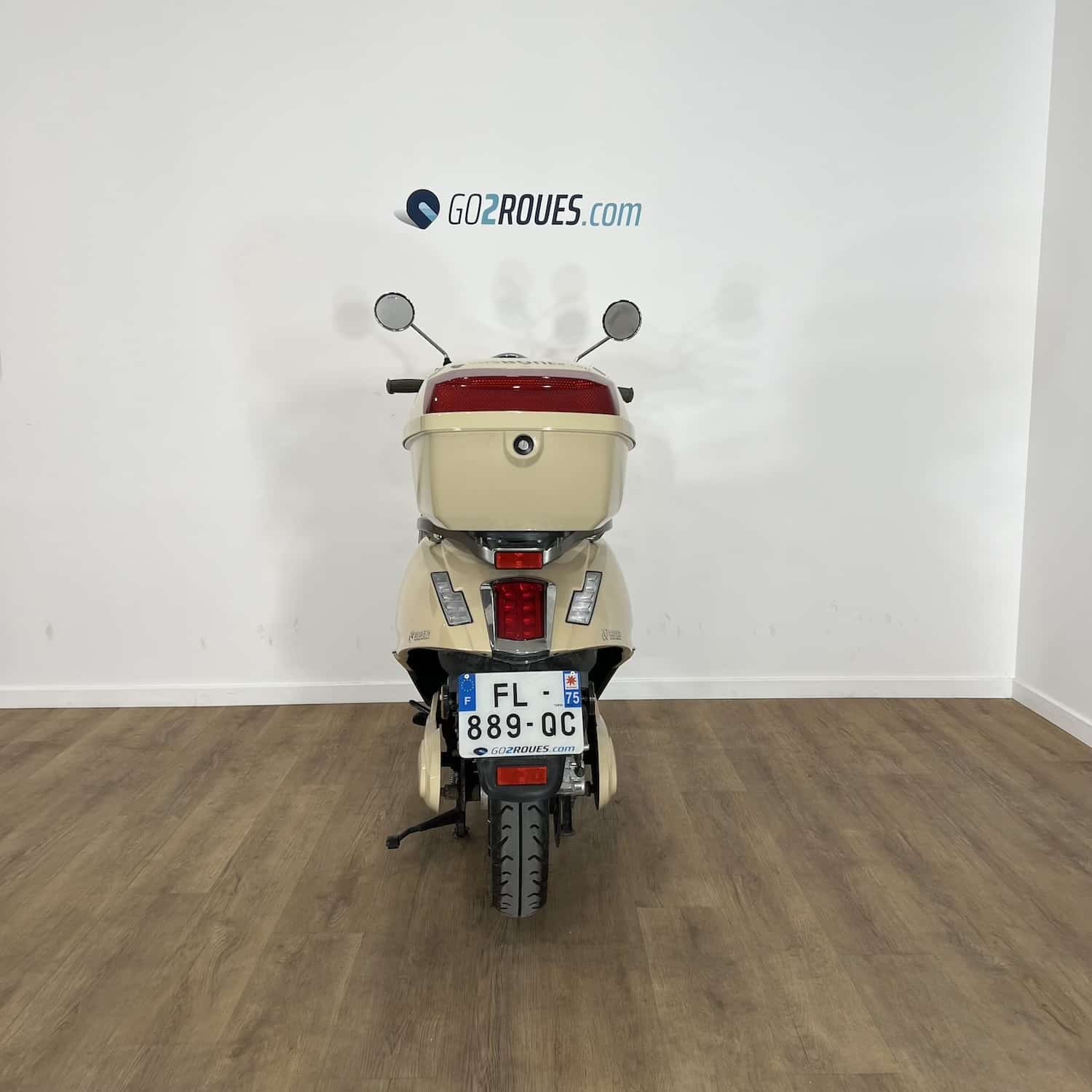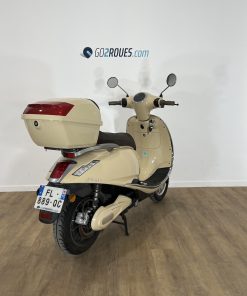 La partie cycle n’est pas en reste avec des amortisseurs hydrauliques et un freinage à disque couplé à l’avant et à l’arrière. Un (petit) casque jet peut être rangé sous la selle. Le passager profite de reposes-pieds amovibles.