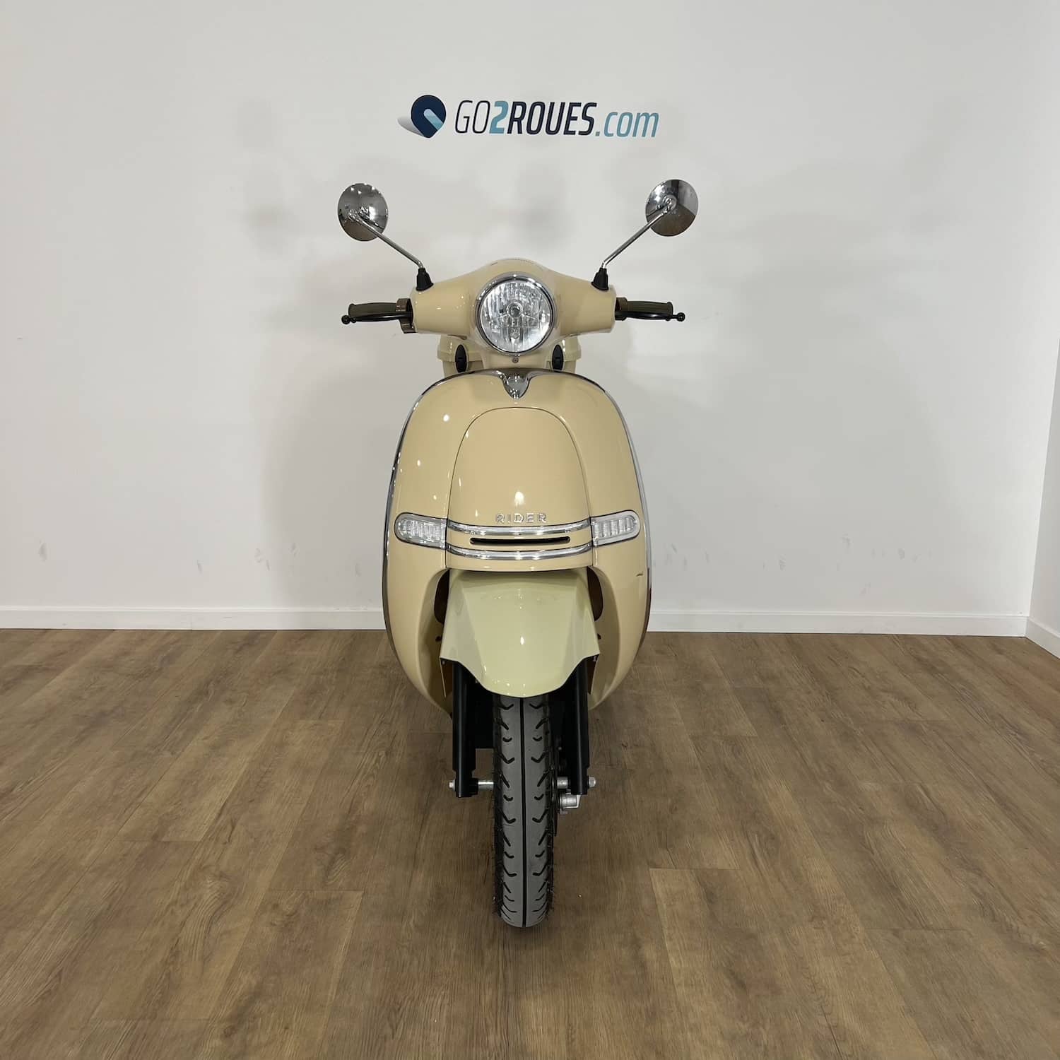 Accessible avec un permis B + formation 7 heures ou avec un permis A, le Rider 5000W 125 est un scooter électrique équivalent 125 permettant de rouler à 95 km/h et affichant une autonomie maximale de 100 km par charge. Marque exclusive à Go2roues, le Rider 5000W est un scooter urbain facile à manier (seulement 98 kg, c’est-à-dire bien plus léger que les scooters 125 thermiques), au gabarit adapté à toutes les tailles.