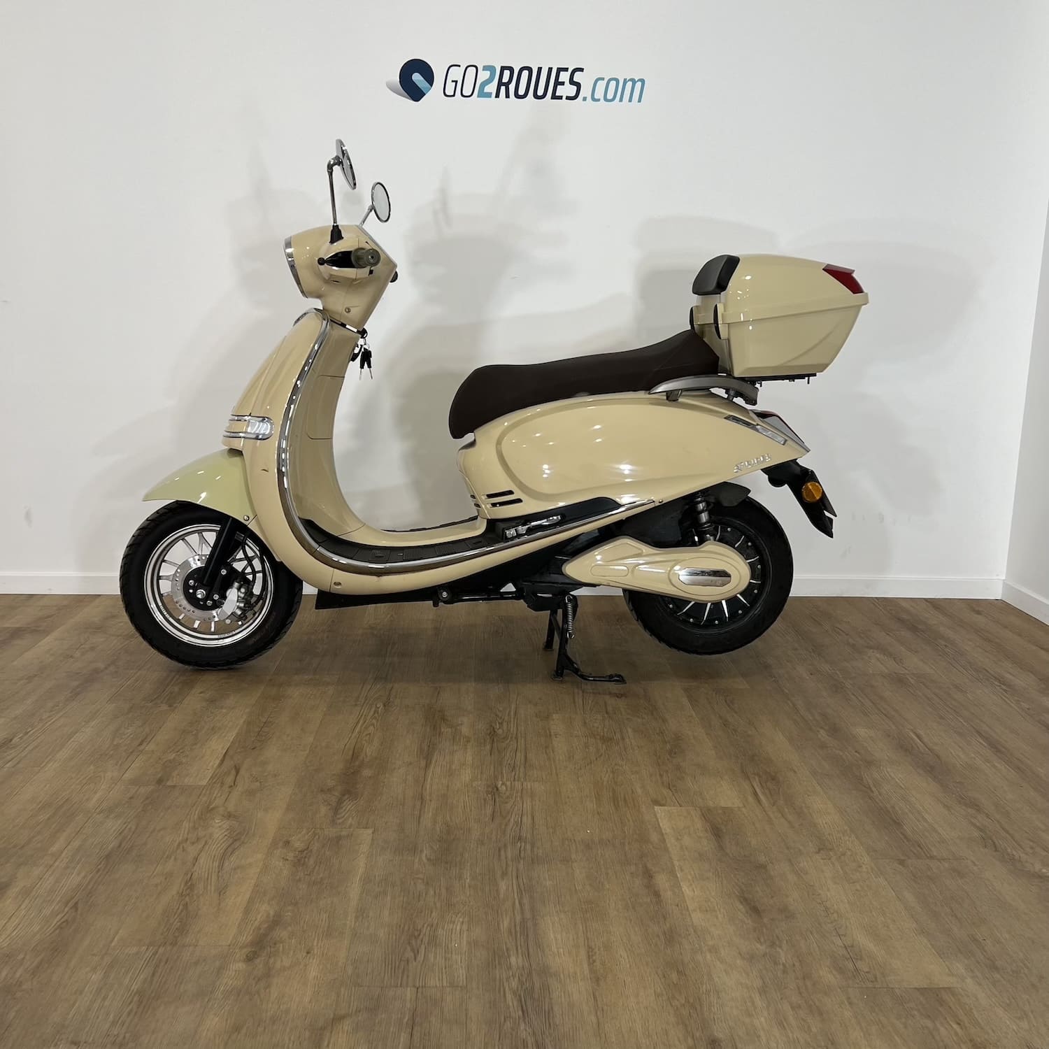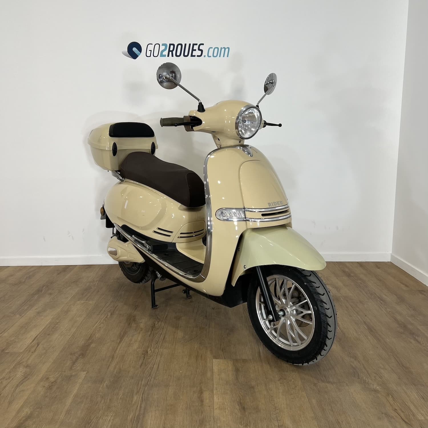 Ce scooter électrique d’occasion Rider 5000W est en bon état. Il est livré avec une seule clé. Il affiche 50 kilomètres au compteur et est garanti pièce et main d’œuvre durant un an suite à la date de votre commande. Occasion Go2roues, avant de vous être proposé, ce Rider 5000W a été contrôlé sur 57 points. La partie cycle, moteur, éclairage, batterie et autonomie ont notamment été vérifiés par nos techniciens spécialisés.