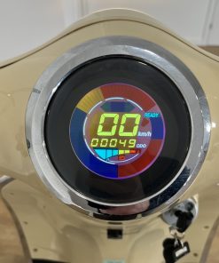 Le scooter électrique 125 Rider 5000w 125 dispose d’une batterie amovible sous sa selle. Celle-ci présente une capacité de 3,75 kWh ou 72V / 52Ah. Amovible, elle peut donc être rechargée à la maison ou au bureau sur une prise 220V classique. La batterie est rechargée à 100% en 6 heures environ. L’autonomie maximale est de 100 km, à une vitesse continue à 45 km/h. A plus grande vitesse, proche de 95 km/h, il faut compter environ 75 km d’autonomie. Chaque freinage permet de récupérer une partie de l’énergie, pour contribuer à allonger l’autonomie. La batterie dispose d’une durée de vie de 60 000 km avant de voir sa capacité chuter de 20% (ce qui correspond à -20% d’autonomie), soit environ 10 ans d’utilisation avant de devoir renouveler la batterie si l’on souhaite retrouver l’autonomie d’origine.
