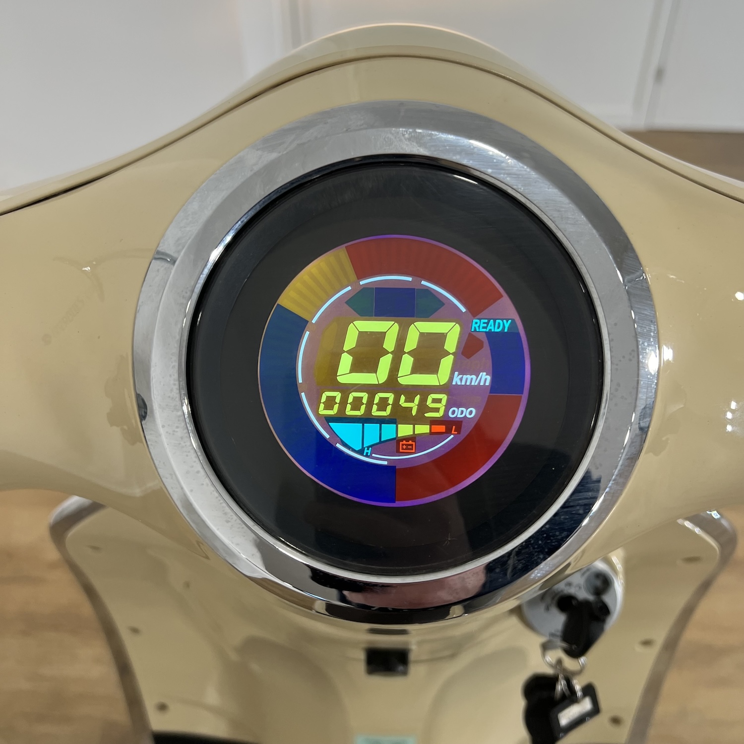 Le seul regret concerne le tableau de bord digital, très lisible mais aussi très succinct (vitesse instantanée, charge de la batterie, clignotants et kilomètres parcourus). On aurait aimé des fonctions connectées avec un téléphone portable, pour le localiser, suivre l’évolution de la consommation d’électricité, …
