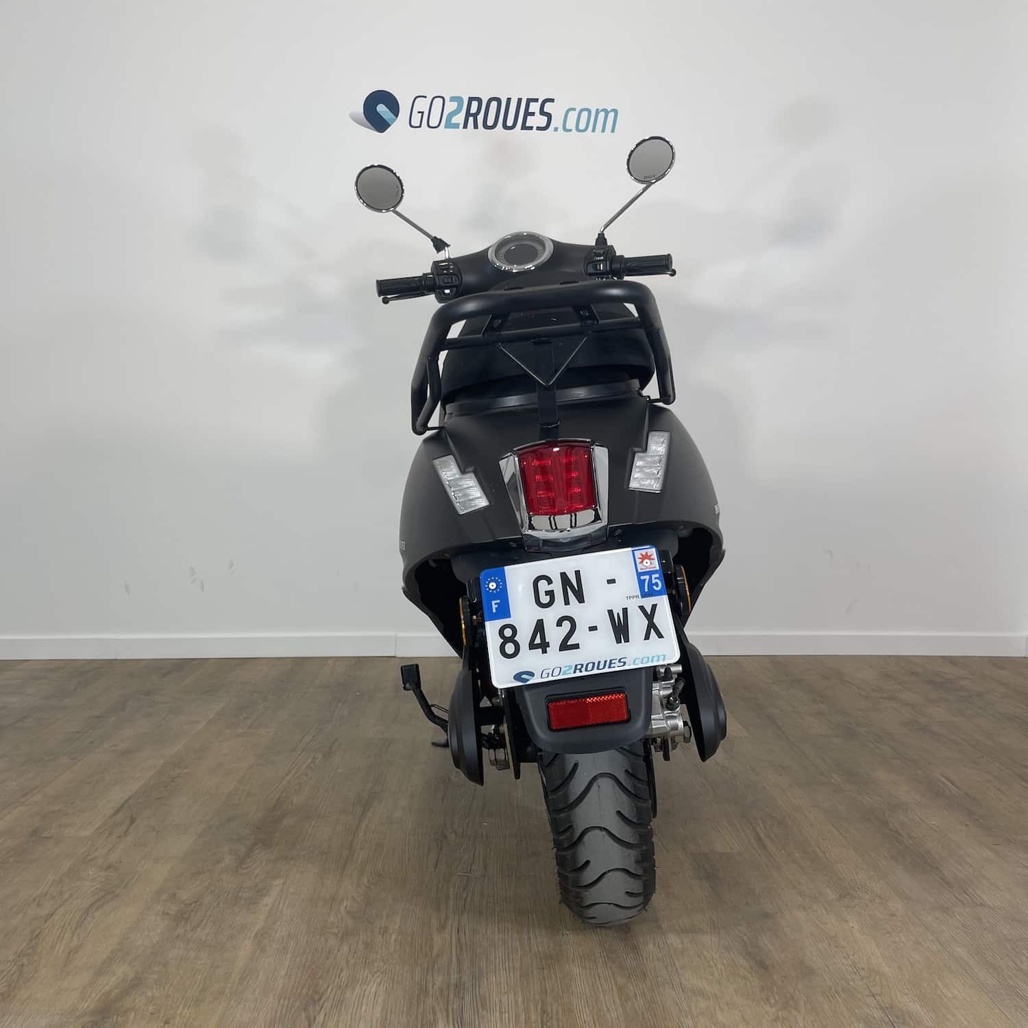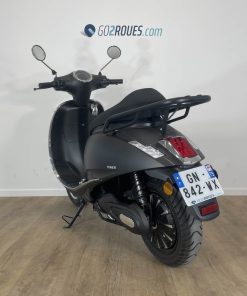 Sous la selle, un coffre permet d’accueillir un petit sac. On ne pourra pas y transporter un casque. Le passager profite de repose-pieds amovibles. Sur le tablier se trouve une boîte à gants. À l’intérieur, on trouvera un port USB. Si vous souhaitez par exemple l’utiliser comme un GPS, ce port USB vous permettra de recharger votre smartphone. Vintage mais très moderne, le Rider 5000W est muni d’un démarrage sans clef : c’est très pratique. Enfin, ce scooter dispose d’une marche arrière : loin du gadget, elle peut se révéler fort utile lors d’une manoeuvre de parking délicate. Sa jantes avant est presque « pleine » : elle ne permet pas d’y placer un antivol (type chaine).