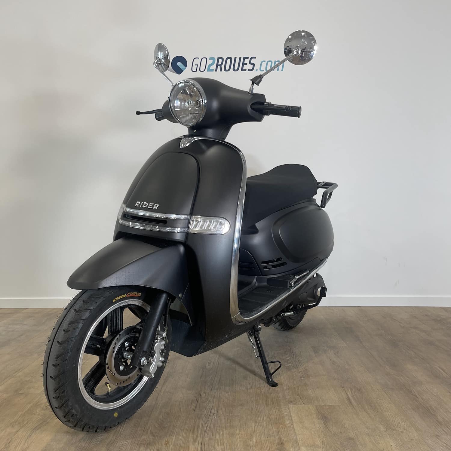 Les Rider 5000W sont des modèles de fiabilité. Partout en France, ils sont utilisés quotidiennement par de nombreux professionnels : plusieurs entreprises de locations de scooters électriques le proposent à leurs clients. On les retrouve aussi au service de sociétés de livraison. Ils sont un deux roues néo rétro, disposant d’un style certain rappelant les scooters italiens des années 60. Sa motorisation électrique le rend extrêmement économique au quotidien : réaliser 100 kilomètres au guidon du Rider 5000W vous coutera environ 0.60 €. Pour en savoir plus, vous pouvez consulter notre simulateur d’économie.
