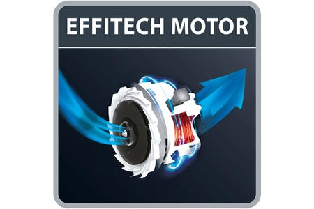 La technologie de pointe du moteur EffiTech garantit un dépoussiérage plus important allié à des économies d’énergie pour un nettoyage en profondeur jour après jour sur tous types de sols.